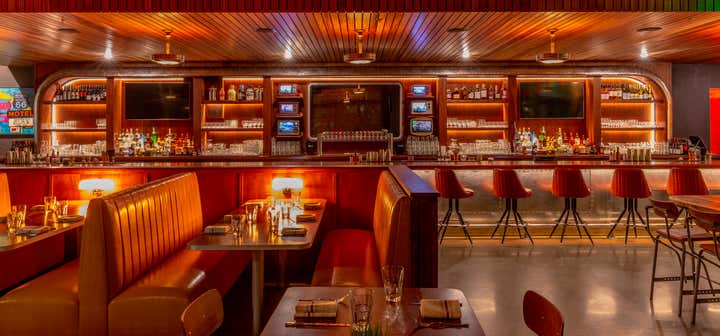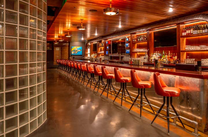 The standout is the 42’ main bar that has taken it’s design inspiration from a classic Airstream trailer. Other signature design elements include “The Garage Bar” built to feel like your dad’s favorite hideaway, and a custom designed throwback sticker collage used as flooring in both restrooms.