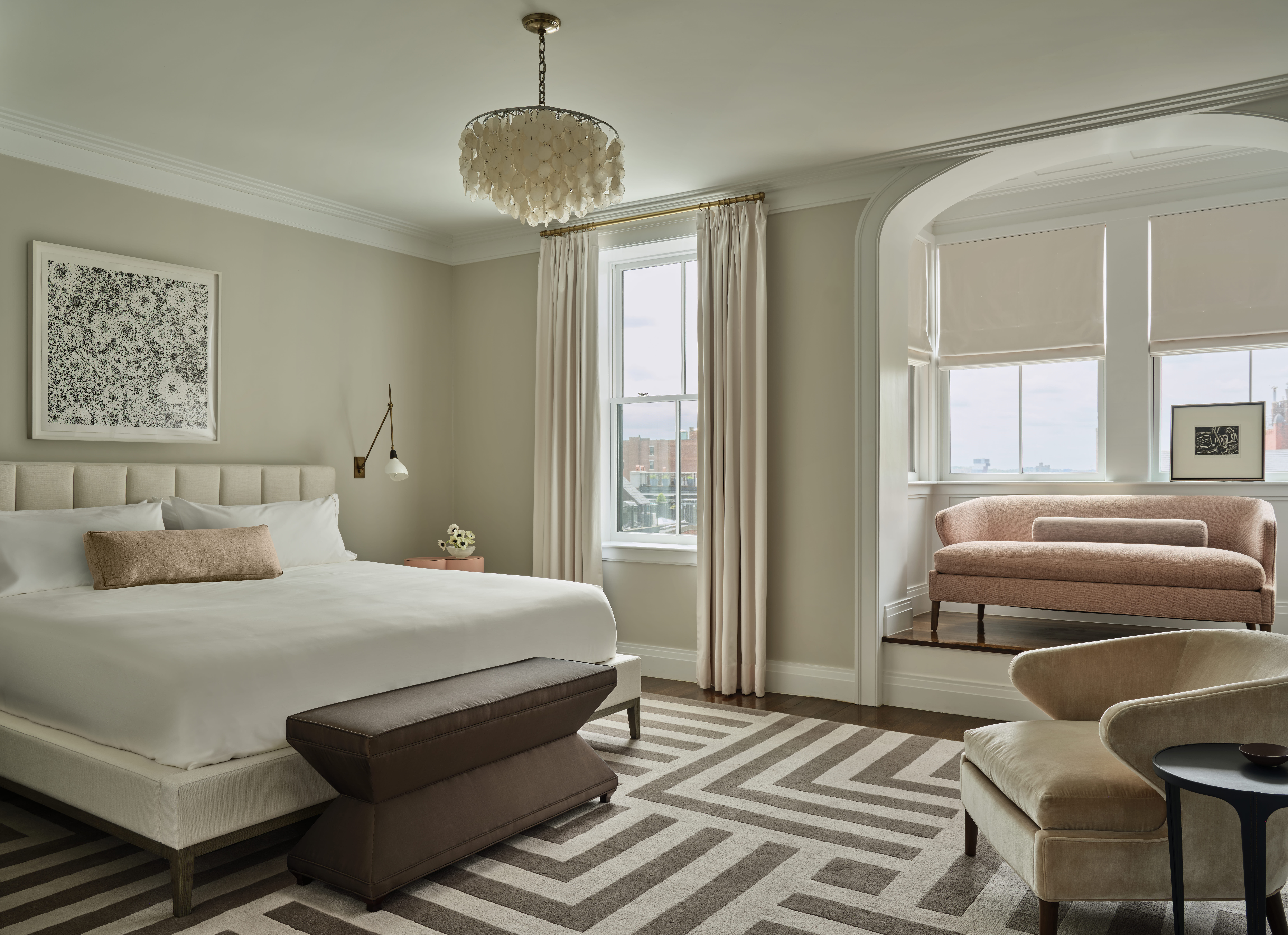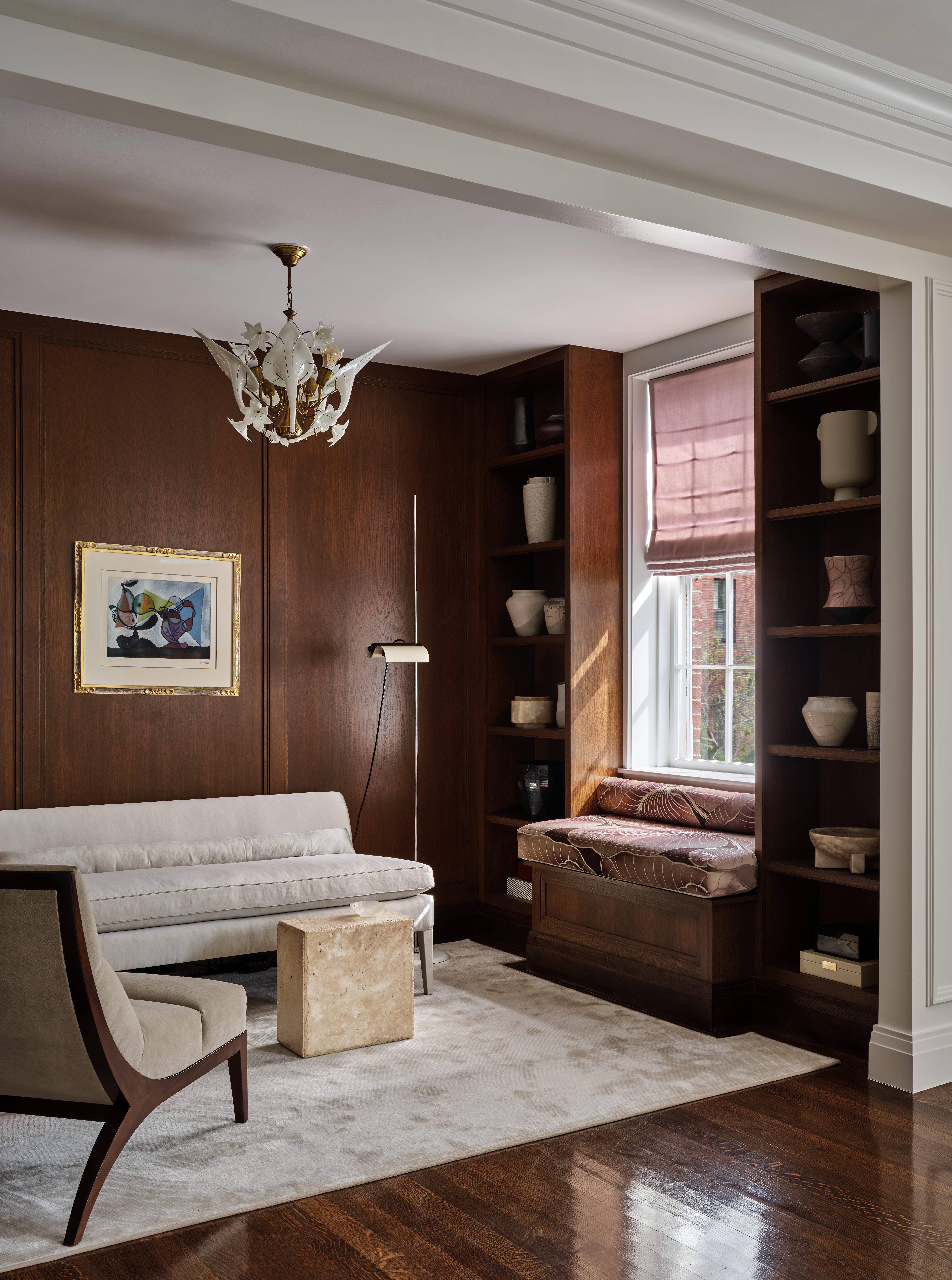 Bow windows, hilltop views, and refined style distinguish this classic Beacon Hill residence. A palette of soft lilacs, warm camels, walnut, and brass provides a sophisticated backdrop for important works of art. The collection includes mid-century icons Picasso and LeWitt as well as contemporary works by Katz, Kobayashi, and Donovan.