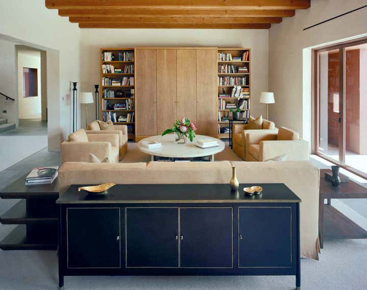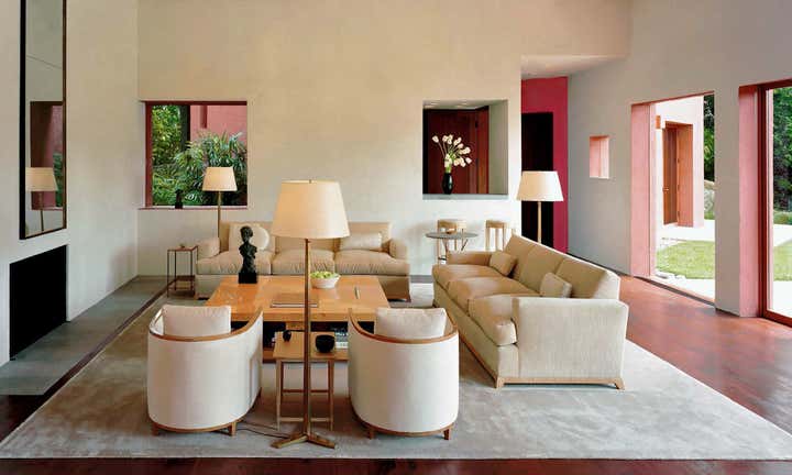 It was particularly special to work on this house by celebrated Mexican architect Ricardo Legorreta. As such I saw my role in furnishing this home as supporting the architecture in a neutral way, while ensuring the rooms had a central warmth and comfort to them. I used classic 1930s lyrical geometric forms to balance and soften the tall cubist profiles in the architecture.
