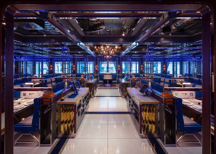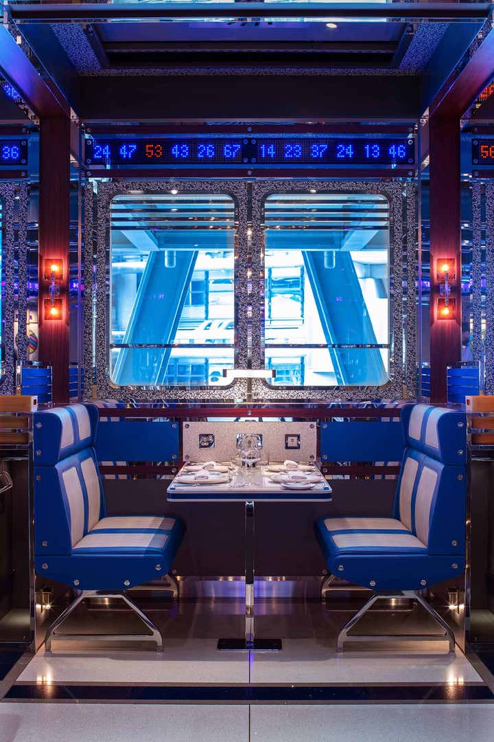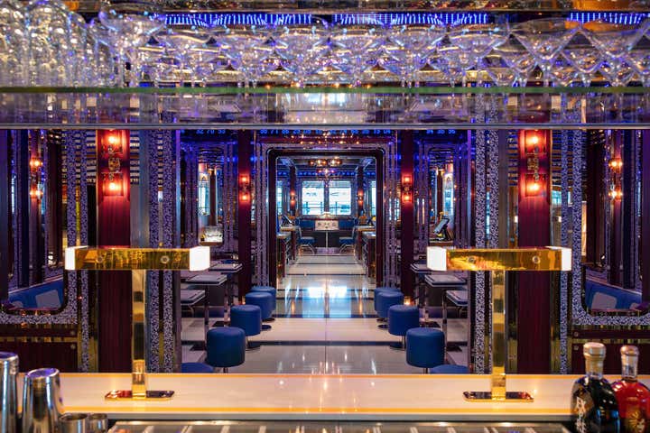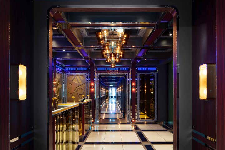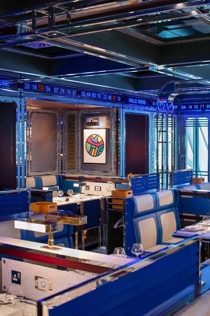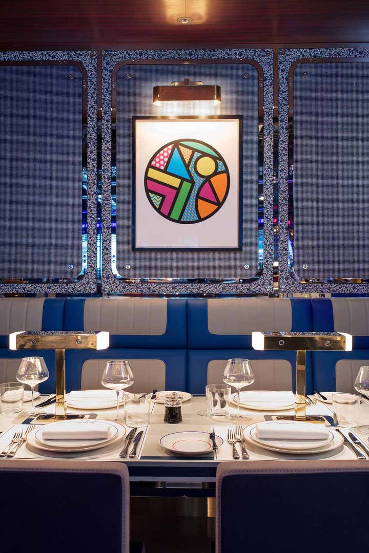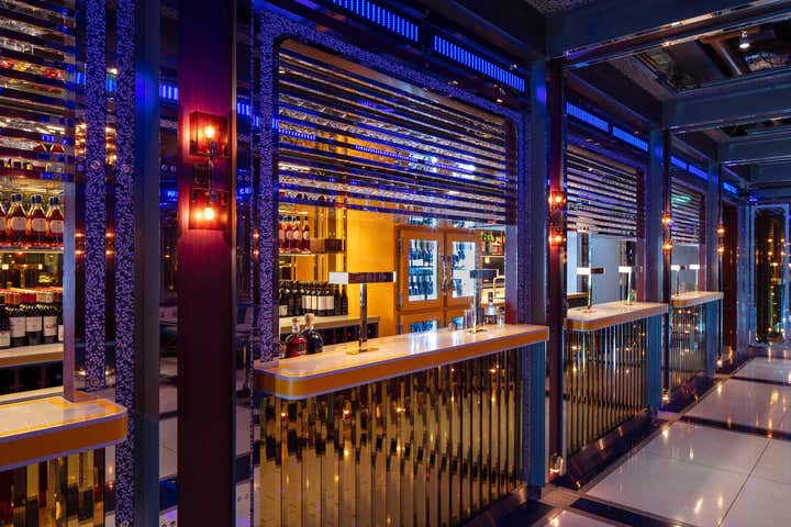 Ultra-camp meets ultra-luxury in the design of Bob Bob Cité. Exquisitely crafted interiors and perfect symmetry strike a delicate equilibrium of aesthetic excess. Inspired by 21st century design and air aviation, the restaurant seamlessly merges the ornate mirrored wall panels with intricate book binding paper and indulgent leather banquettes.