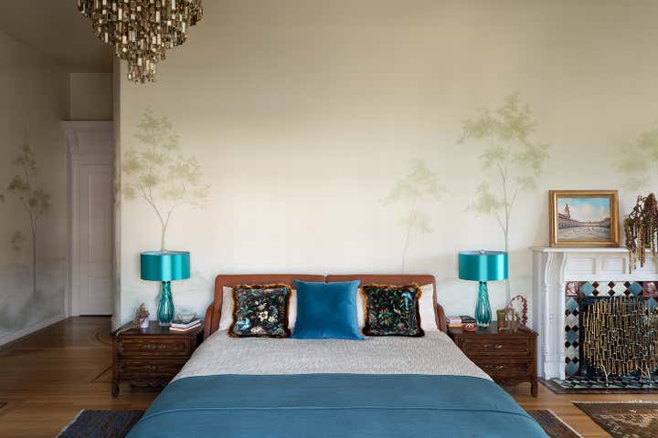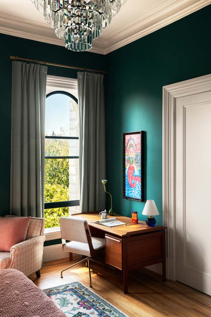 The beautiful family who moved into this San Francisco historic landmark, the Ortman-Shumate house, had a vision of a home that embodied their effortless mix of styles and tastes. With Italian and Indian family ancestry and a love of a broad diversity of antiques eras, silhouettes, colors, and patterns, it was an absolute joy for our team to create each room, which layered up to an overall energy throughout the house that feels like easy breathing – as if these spaces were composed just yesterday, but also across decades, all at once.