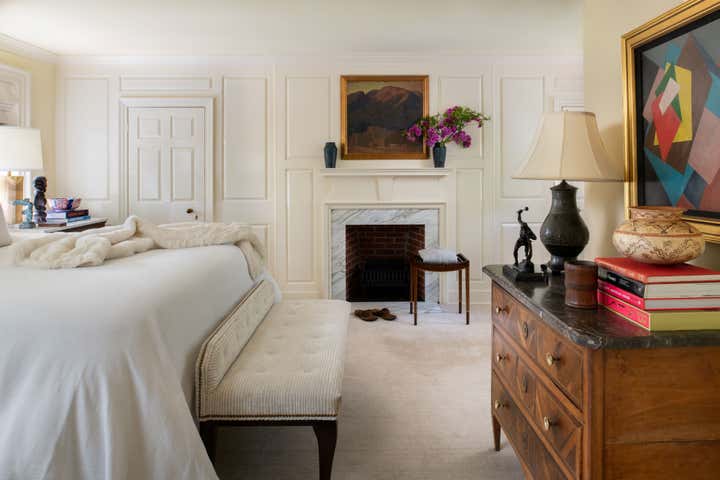 We are thrilled to reveal the full gallery of images of Boxwood Hill, the Tidewater Colonial-style home of Jamie Merida and his husband, Vincent Bochin. Layers of inherited African art and antiques, tailored neutral upholstery, and traditional "quiet luxury" define the aesthetic of their home.