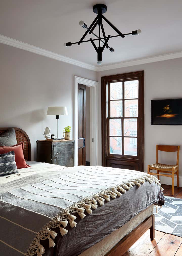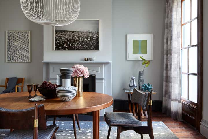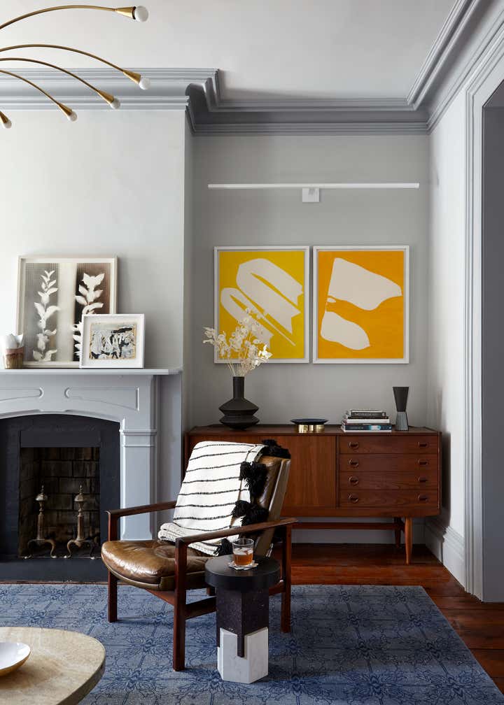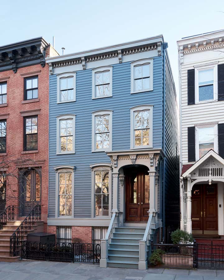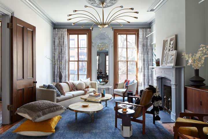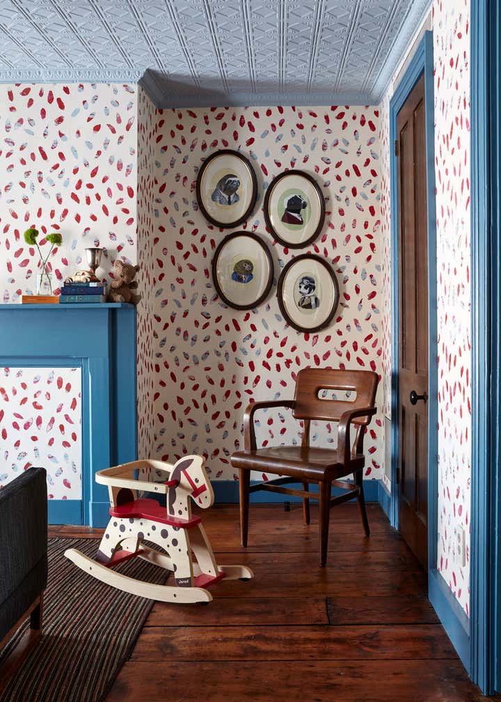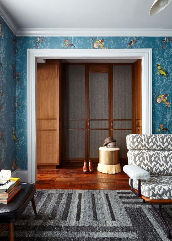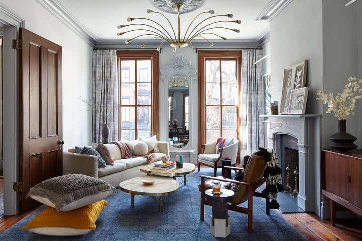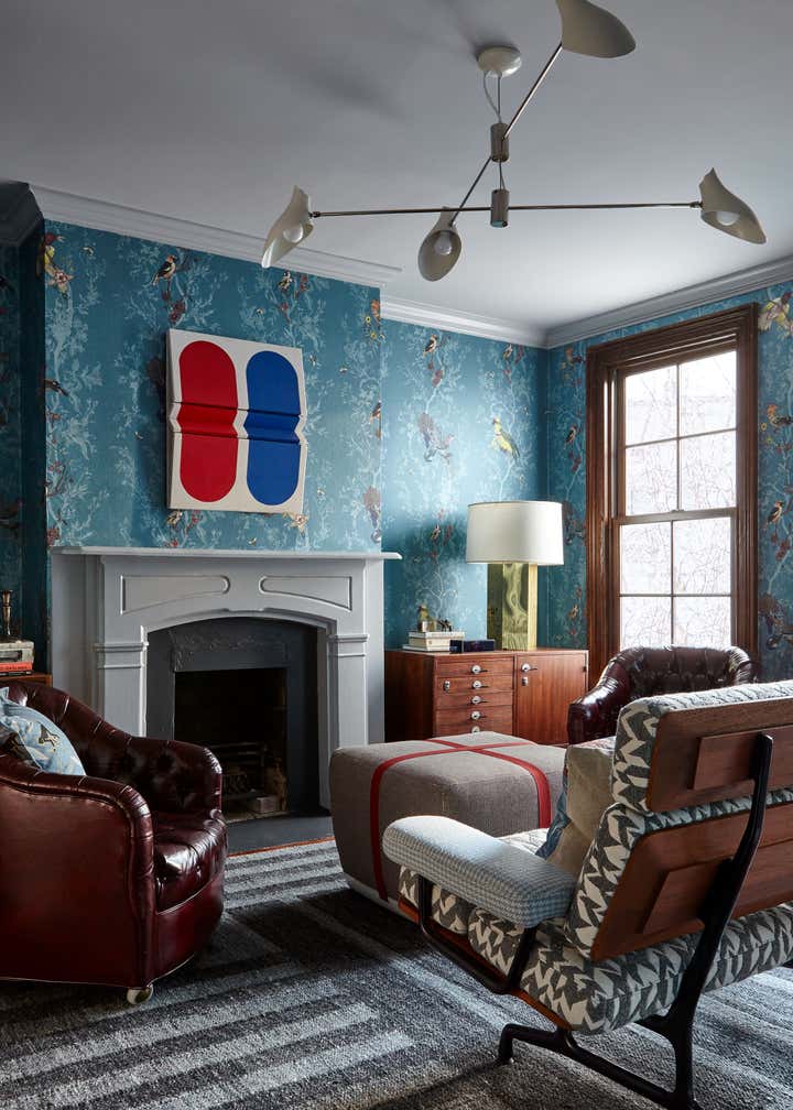 Built in 1853, this rare wood-framed townhouse in the Fort Greene historic district was purchased by repeat clients as a new home for their young family. Our design strategy focused on preserving its good bones and accepting its quirky elements, complementing them with select modern interventions. The clients’ personalities are expressed through custom millwork and metalwork, an array of color and contrast studies, menswear- inspired textiles and bird and floral prints that blur masculine and feminine notions and provide the ideal context for the vintage furnishings purchased over time. Architectural additions consist of a new kitchen, new bathrooms, central air conditioning and a skylight that floods the stairwell with natural light. Tying everything together is the artwork, which includes a Robert Youngerman diptych, a large-scale Andrew Moore photograph, and a Robert Moreland graphic shaped canvas, juxtaposed with re-framed flea market finds.