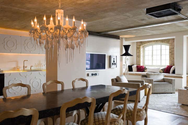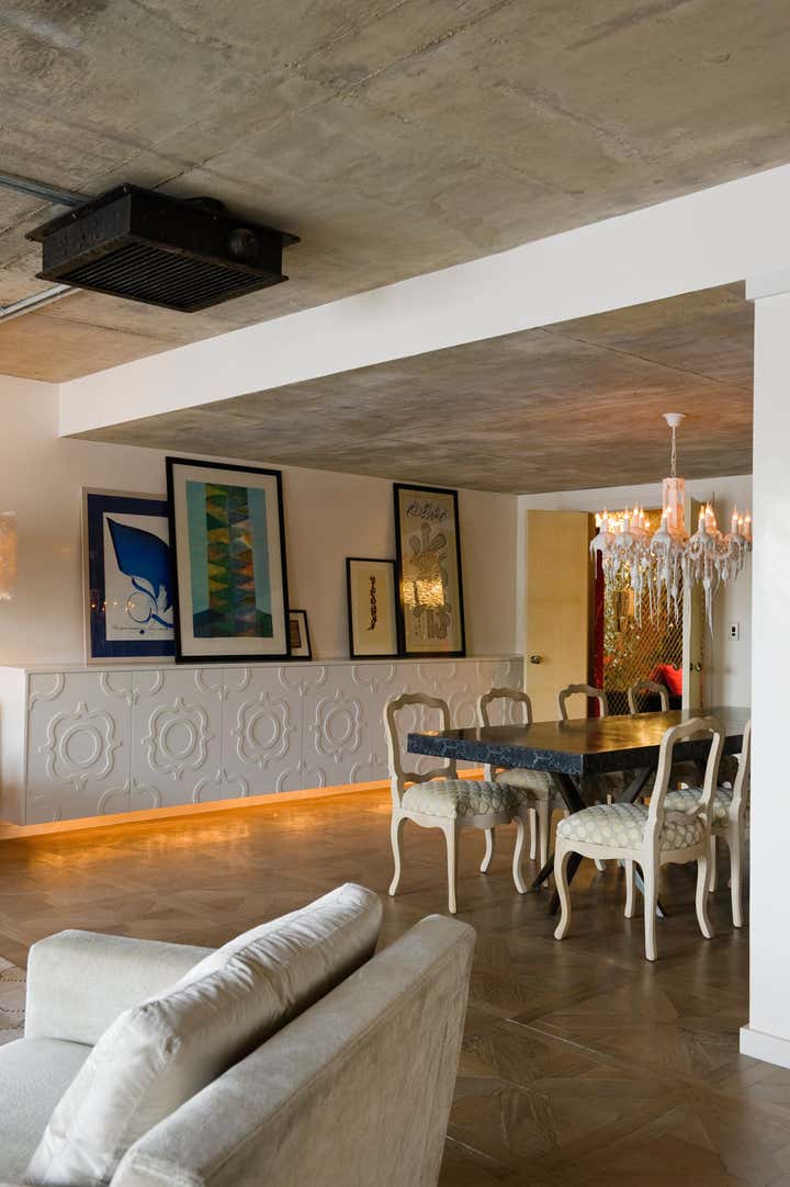 Remodelling and furnishing of an historic warehouse loft apartment overlooking the River Thames in London.