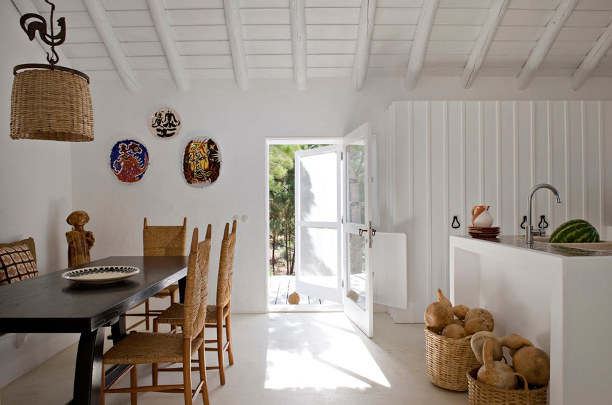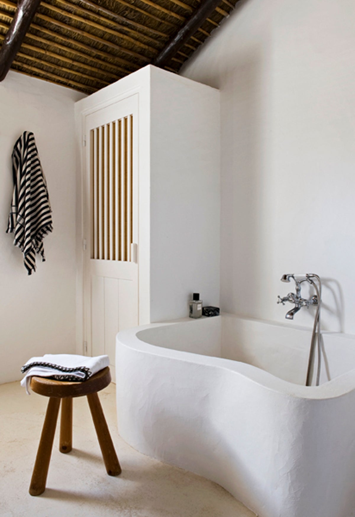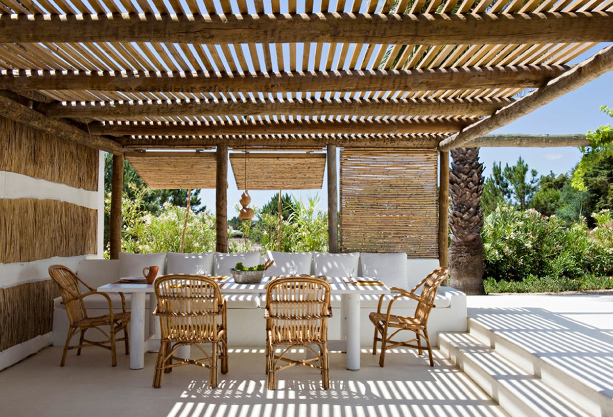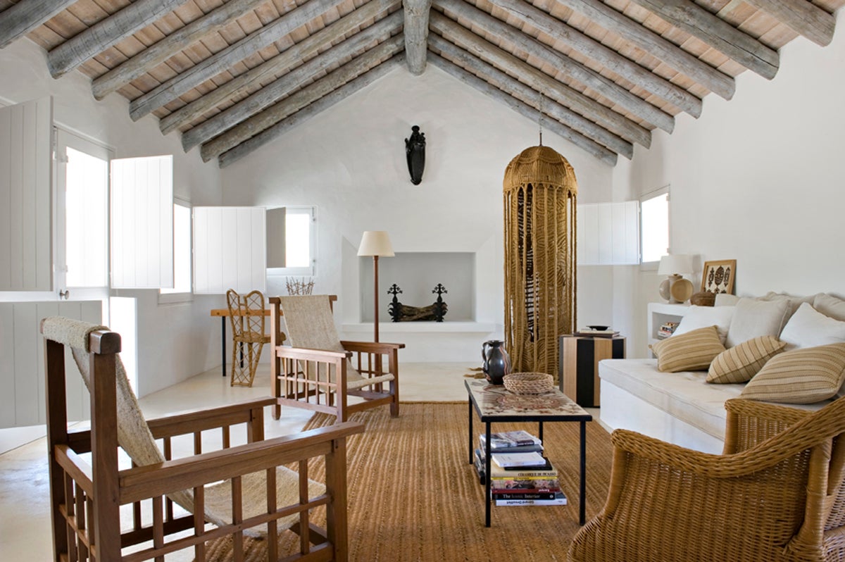 It is on a dune near Lisbon, in a very posh gypset area, that Suduca Mérillou built this vacation home. Inspired by the homes of local fishermen, they designed a set of 3 cabanas: one for the living room, one for the kitchen, a third for bedrooms, connected by wooden walkways put on the sand. Suduca Mérillou used traditional local materials: straw, wood, bamboo, lime. "We wanted to create a pure atmosphere, light and relaxing". Special care is given to the terraces runs much of the holiday life. Inside, the walls are whitewashed, beams in a monastic whiteness. Materials raw and poor, straw, reed, string, raffia relay around vintage pieces of Calder, Gio Ponti, Royere and Lurcat.