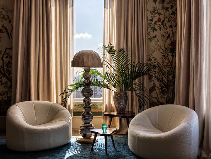 Our team was tasked with transforming a minimal, monochromatic 4,000-square-foot apartment, located in an iconic new tower in Carnegie Hill, into a warm, carefully considered and colorful home. Although this turnkey residence addressed the spatial needs of their young family of five, the clients hired our team to bring soul and depth to the space. It was essential to frame the skyline across the Jacqueline Kennedy Onassis Reservoir; yet, it was equally important to ground the apartment within the cityscape and for the view to not dominate or dwarf the interior space.