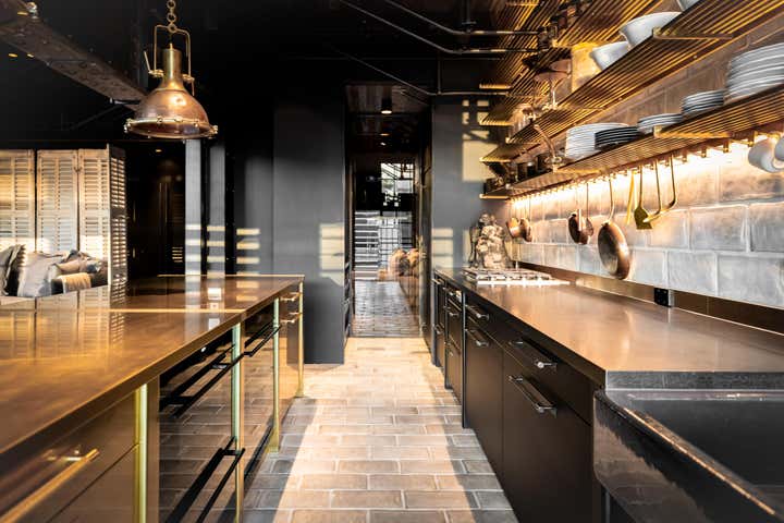 Stewart + Stewart drew inspiration by sourcing and incorporating salvage from the the client’s rural property, a working farm that had once transported bales to this historic wool shed, now converted into private residences. Highlighting its significant structure, customised warehouse doors are layered with sheep shed timbers, dark glass and brass engraved wheels. A dismantled and newly reinstated feature beam with working pulley grace the entry. A raw, uncompromised palette of steel, original industrial brackets, hand made tiles and walls roughly plastered with earth from the property are reflected in unpolished brass, black glass, paired with matte powdercoats and dense slate.