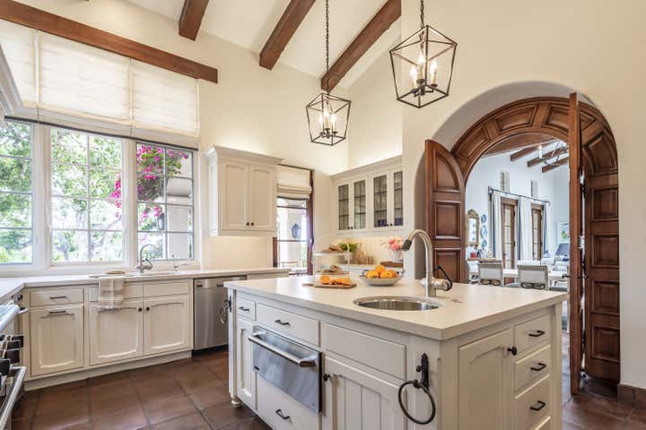 The Renovation of Casa del Dos Palmas began with redefining the axes based on existing 100-year trees, separation of public and private spaces, and the introduction of natural light to an old Spanish Colonial Estate. --- We started this project by developing an identity for the home by designing a new entry axis centered between two old-growth live oaks. We then reoriented the master bedroom and patio to take advantage of ocean views. Working closely with our landscape architect, we developed a stepping entry procession that breaks softly into and a variety of private gardens. The interior of the house was dark and shut off to the beautiful surrounding landscape. By introducing two ridge skylights over the living room and dining area, the rooms were transformed into bright, fresh spaces. This small move completely changed the feel of the entire house. Working with our in-house interior design team, the clients were careful to not erase the charm and historical character of the home. A salvaged 16th-century fireplace mantel was added to the main living area to further imbue a sense of permanence to the house. “Being honest with the history of the area and taking advantage of unique antiques and artifacts has always been something important in our work. There is a real beauty in the balance of the new and old that we always look to showcase in our projects.”