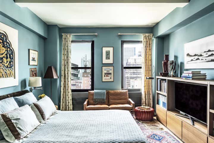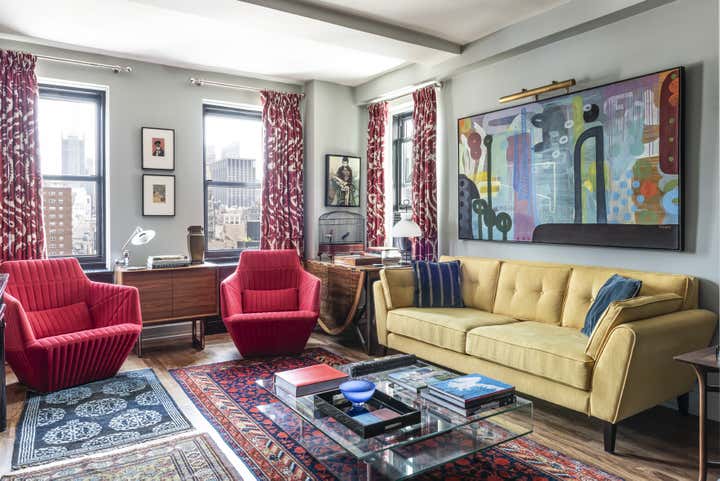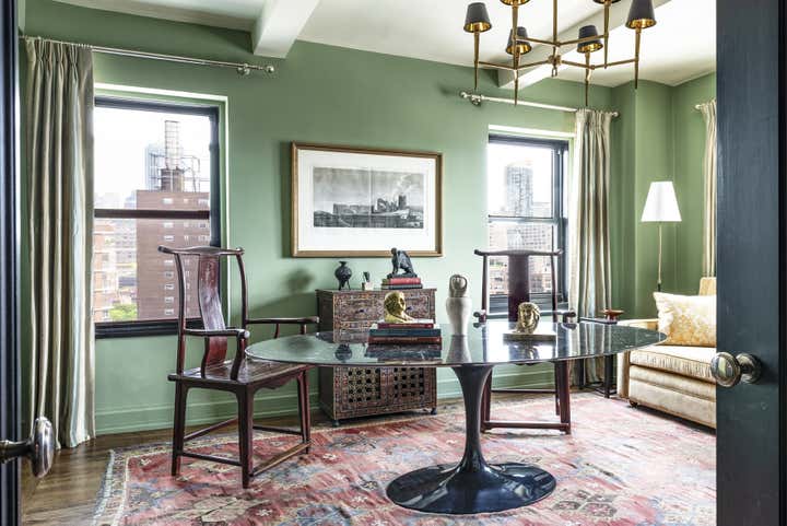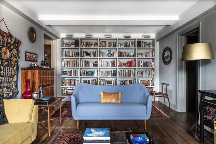 A New York City prewar apartment featuring art, objects, furniture and objects collected during the owners travels in Asia, the Middle East and Europe.
