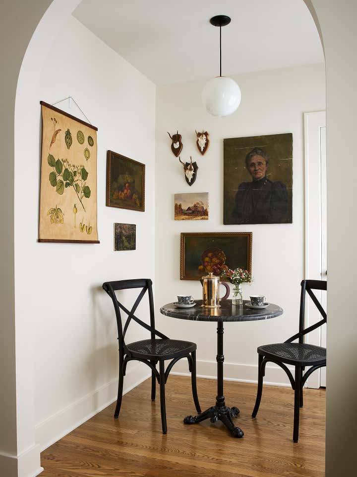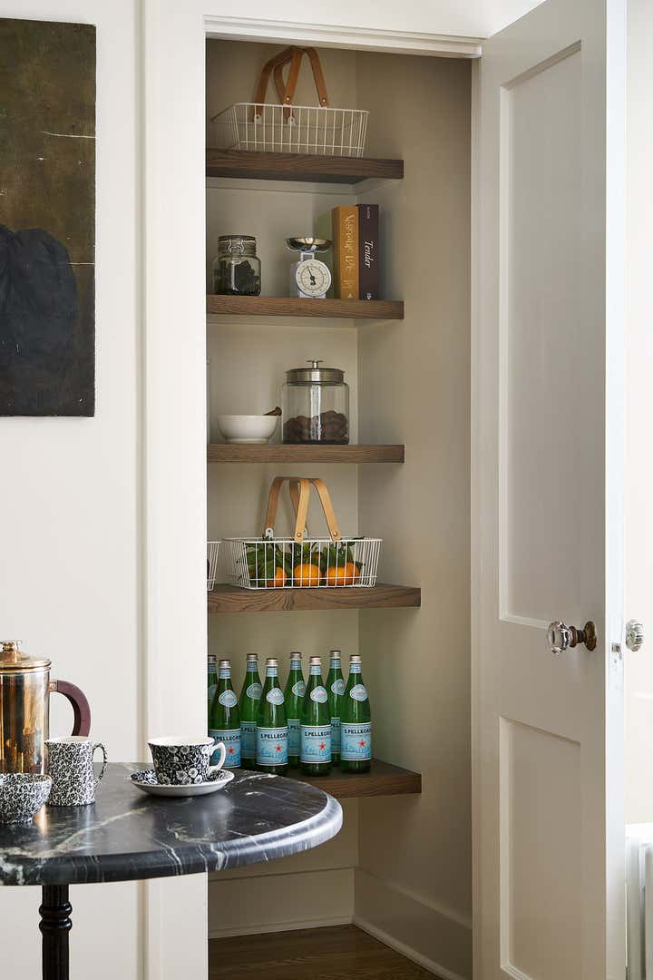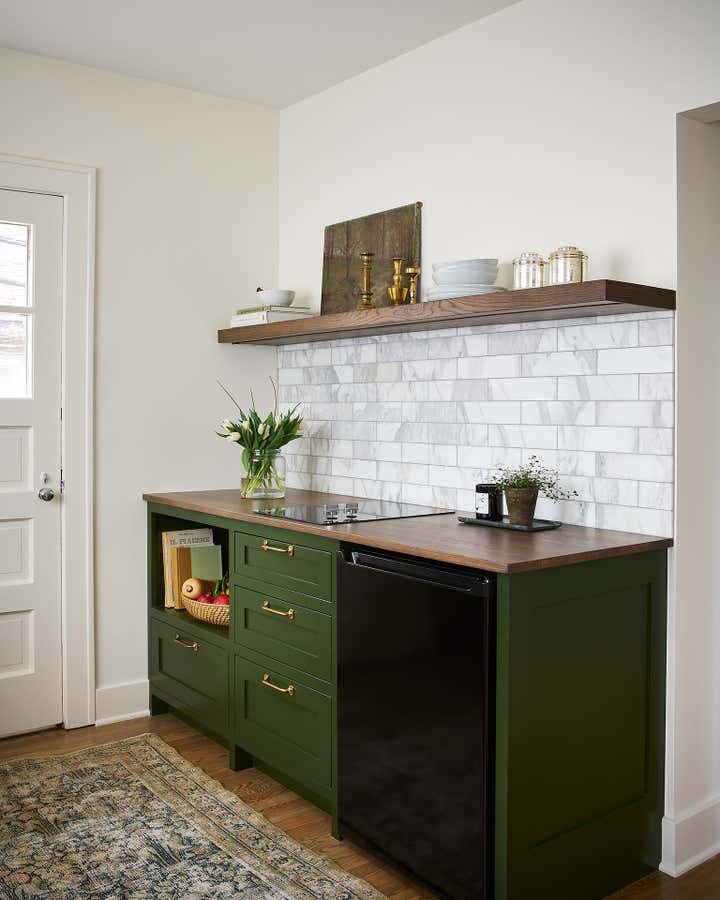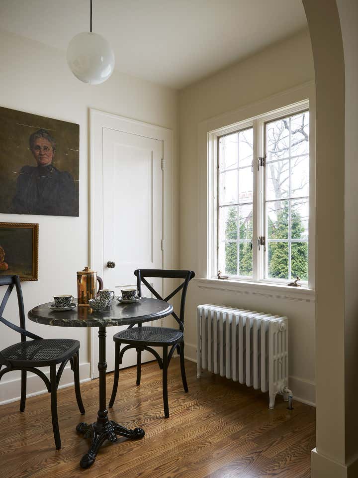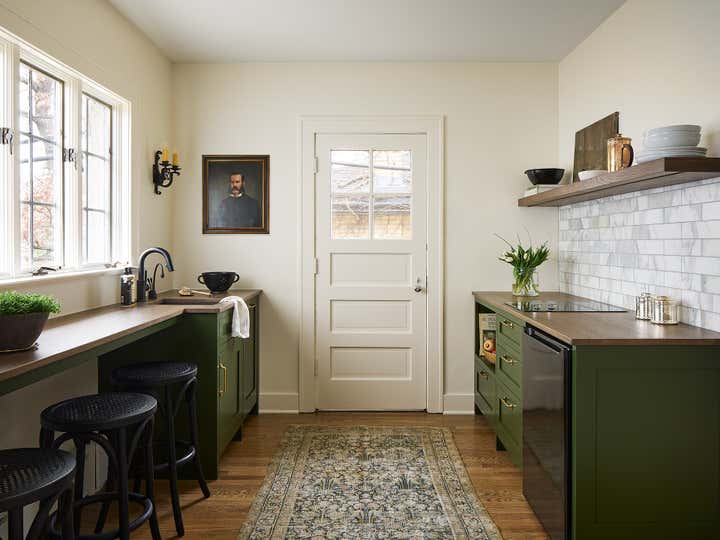 a coach house, usually part of an estate or adjacent to a main house, used for housing coaches, carriages, and other vehicles was remodeled with intent to host guests and adult children visiting from out of town. The remodel included a gut rehab of kitchen, dining space with pantry closet and bathroom and a refresh of the bedroom, living room/entry.