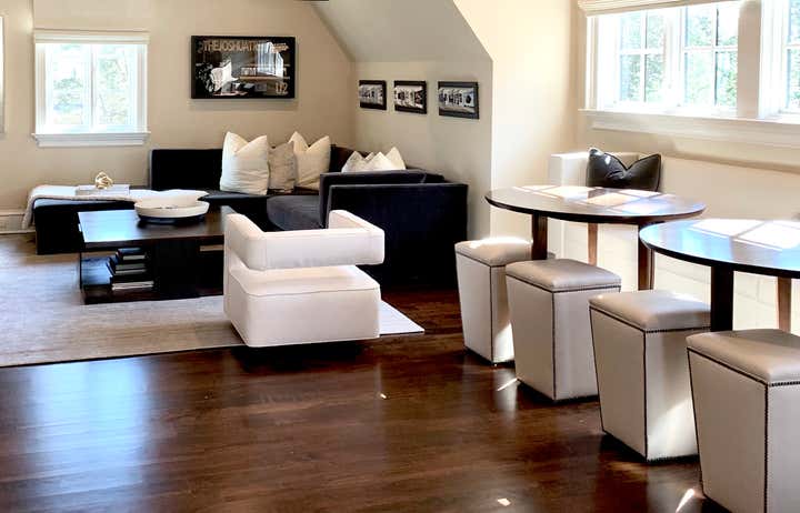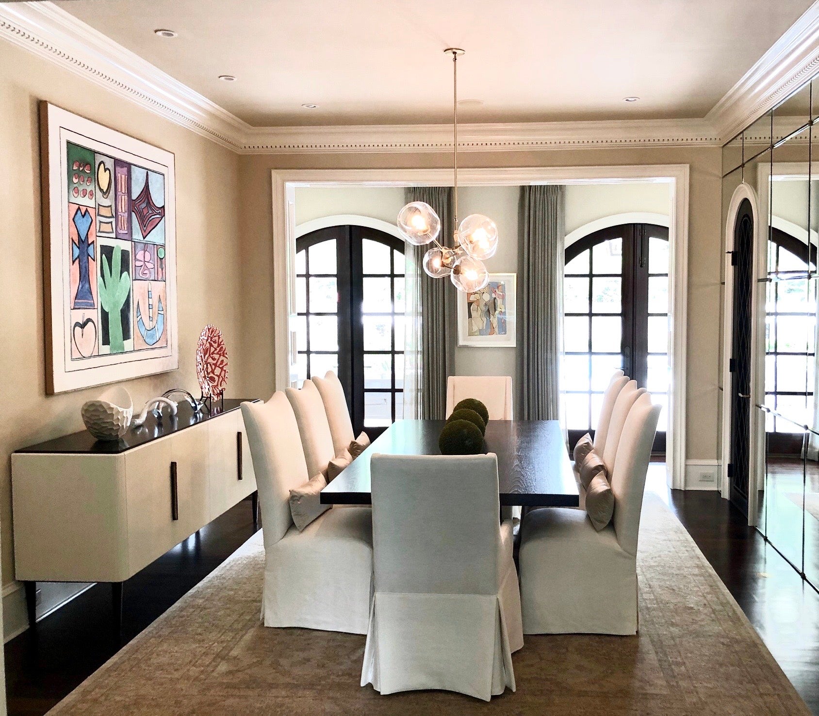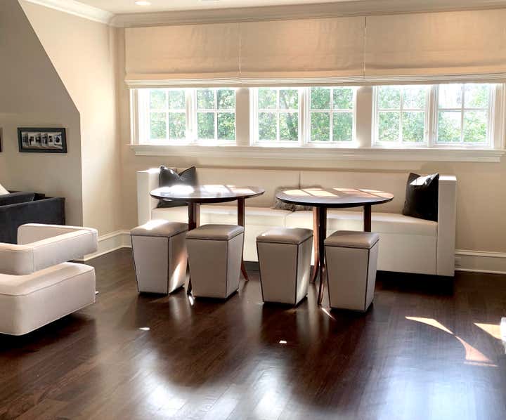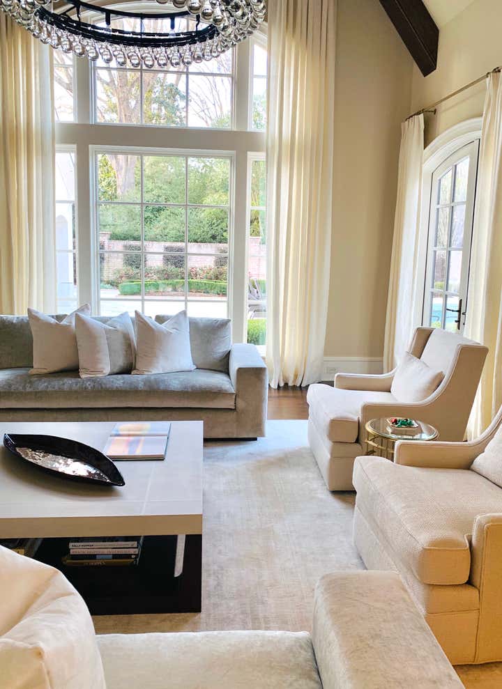 This contemporary home in Charlotte was in need of a refresh. We went through with new paint, drapery, and furnishings in the family room, dining room, and upstairs media room to create a revitalized space for this family home.