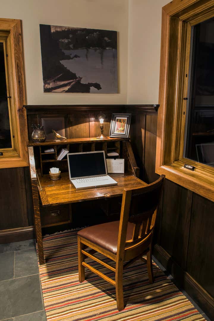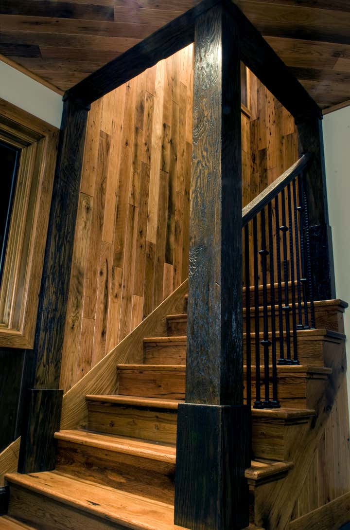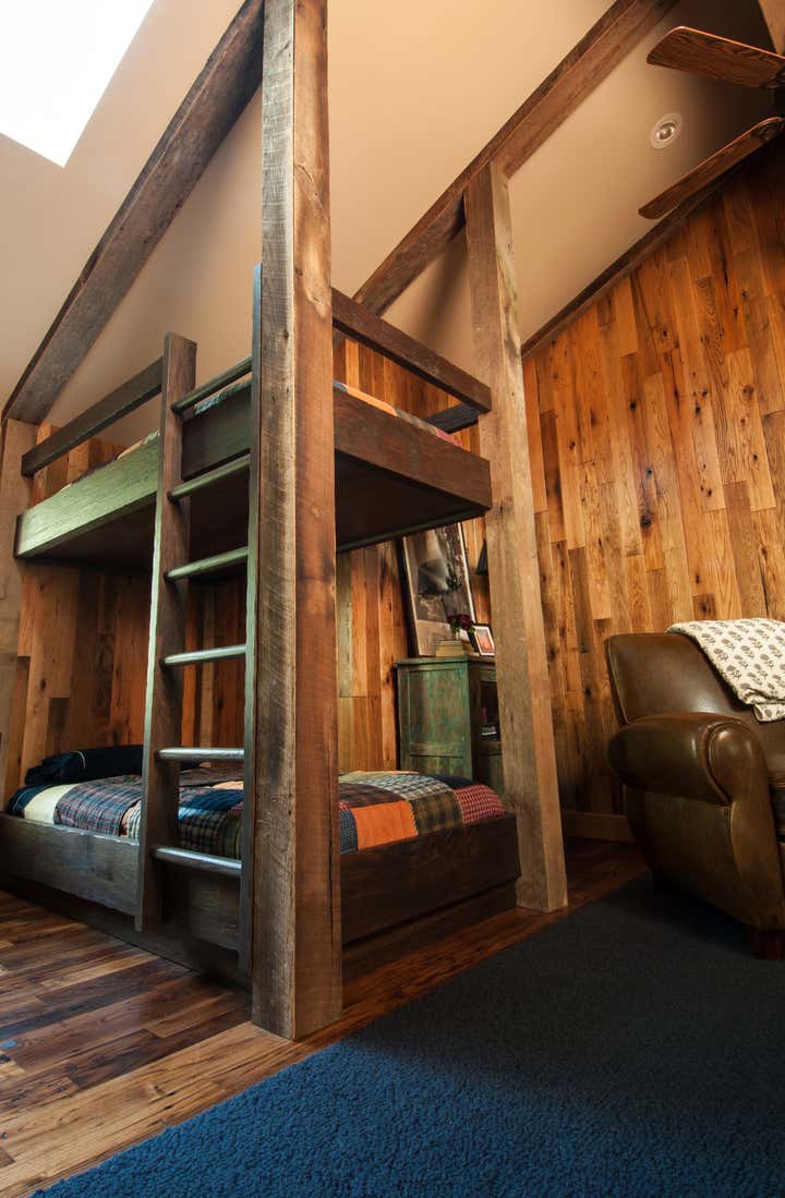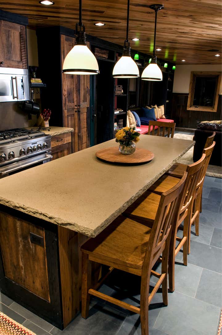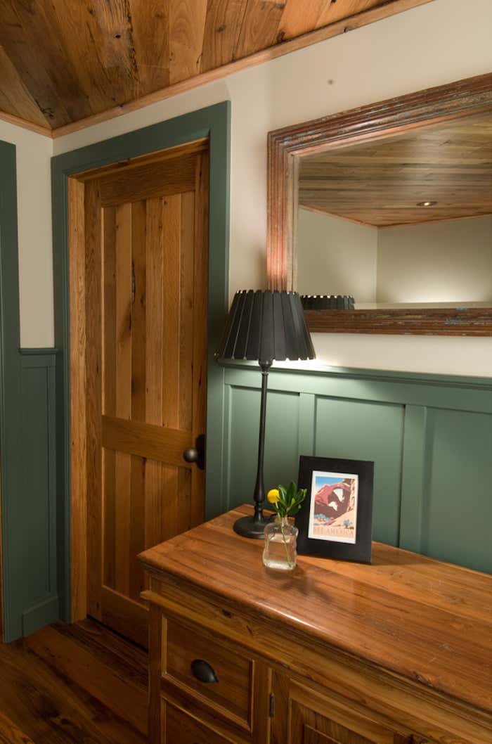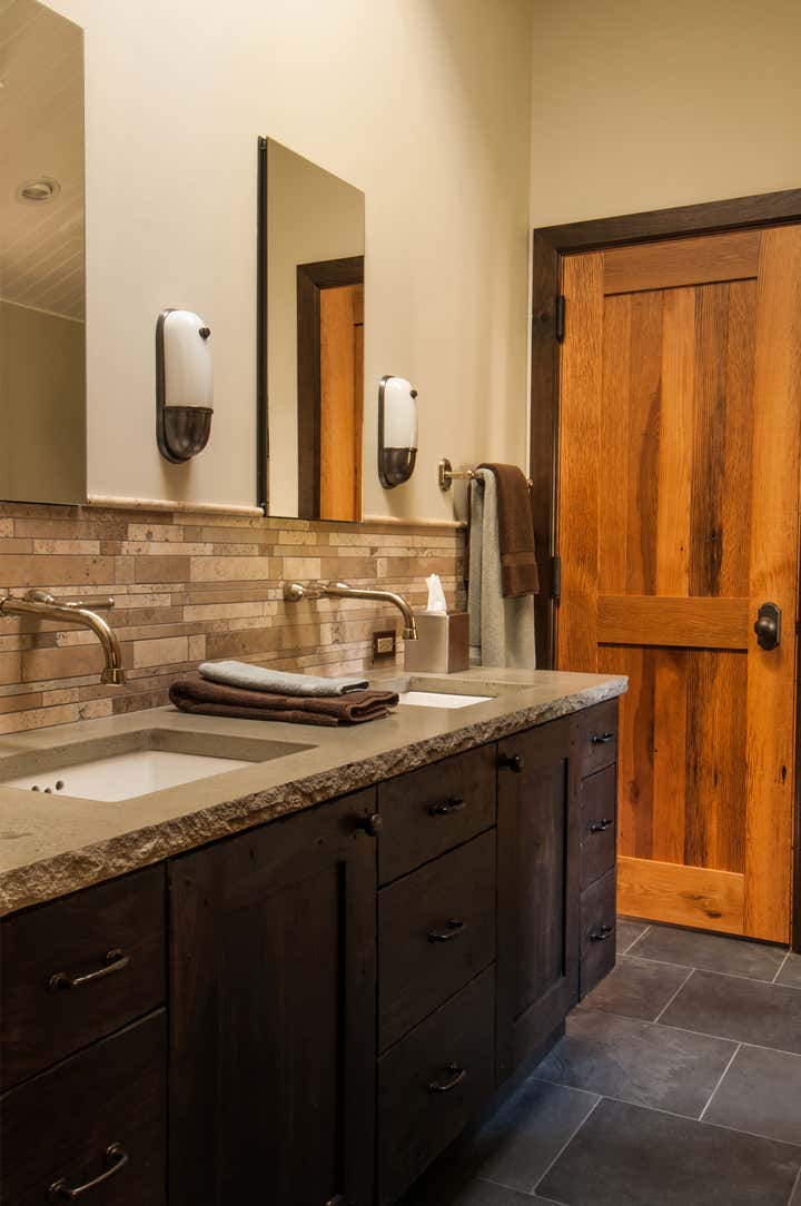 Quality over quantity was the key ingredient to this small scale mountain lodge. Rich antique Chestnut is used to counterbalance the otherwise clean and simple palette.