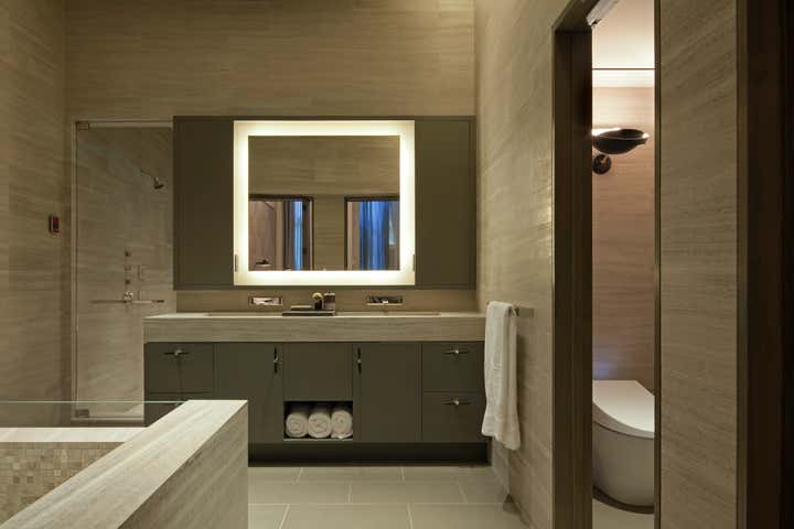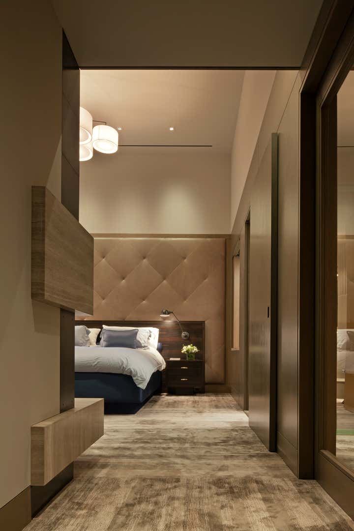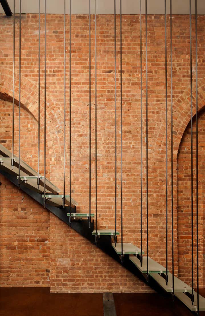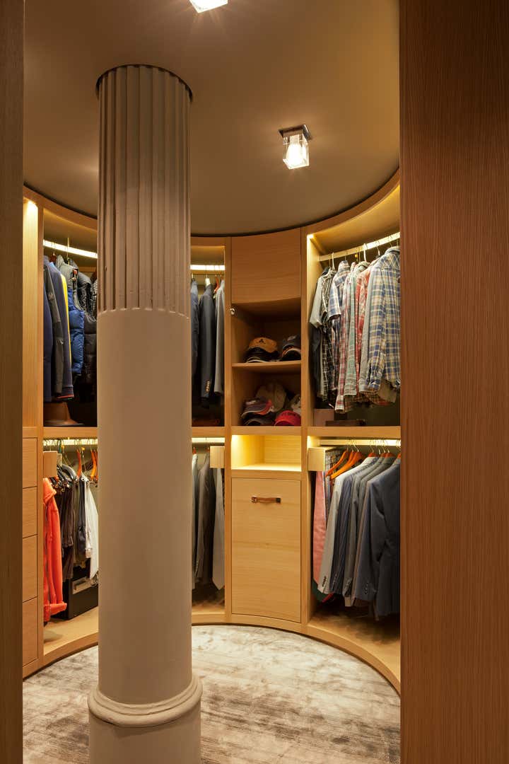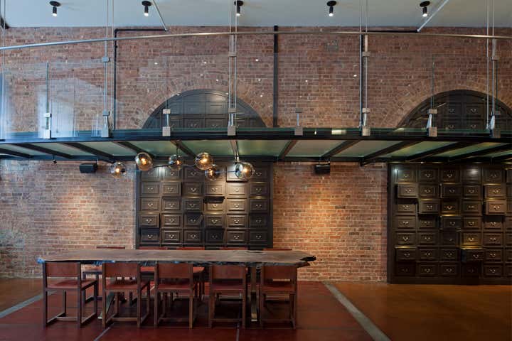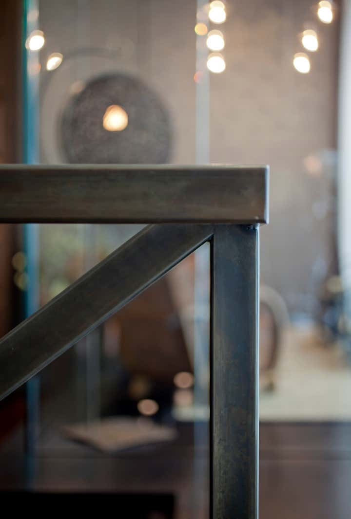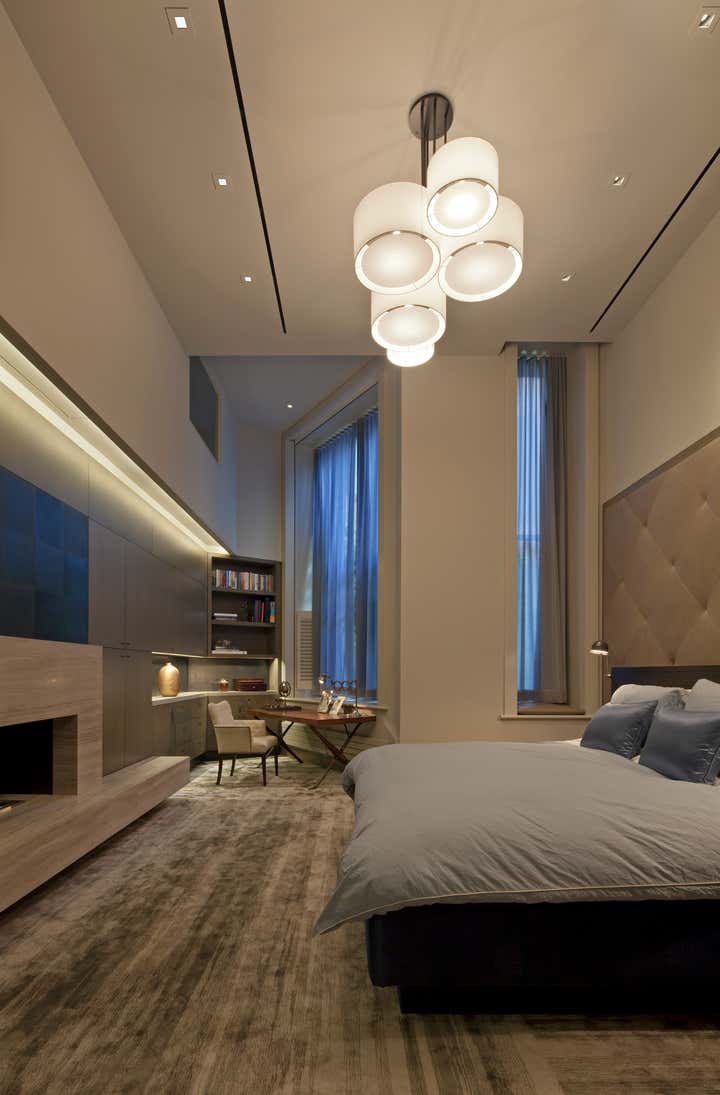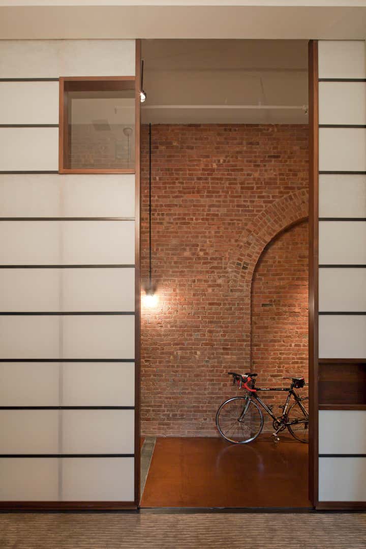 The Crosby Street Loft building is located on a cobblestone block in the Soho Cast Iron Historic District. Built in 1882, it was formerly a department store, and converted in 2001 to a 10-unit loft condominium. Our renovation of a second floor loft retains and celebrates many of the original details, including generous, open spaces, 14 foot plus ceiling heights, Corinthian-style columns, and a continuous 120 foot exposed brick wall with integrated archways. The design was a collaborative process, integrating elements discovered on the client’s world travels. Design features include a 12 foot tall glass lounge, two fireplaces, Control4 smart home system, a stone, cold-rolled steel and custom walnut cabinet kitchen and living room, and a luxurious master suite reminiscent of a 5-star hotel. Architect: David Howell Project Manager: Jill Diamant Interior Design: DHD Interiors