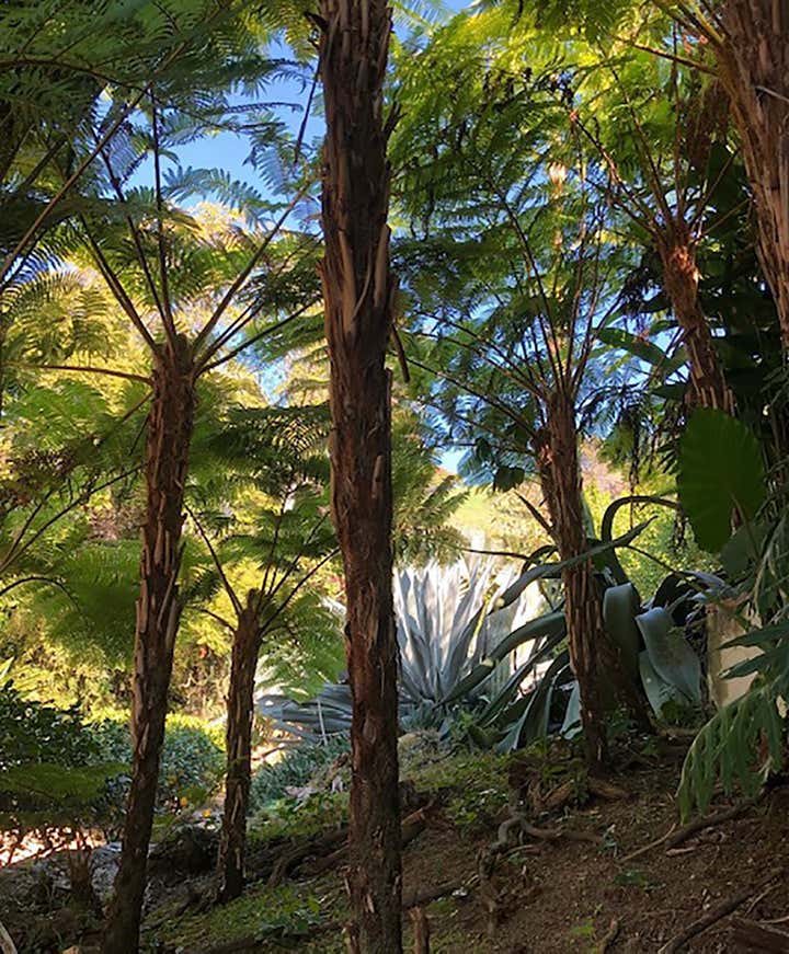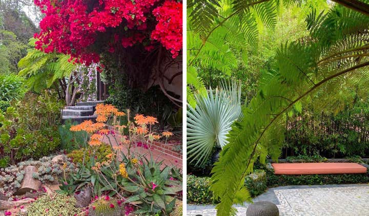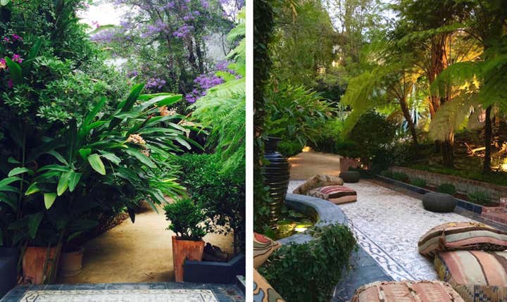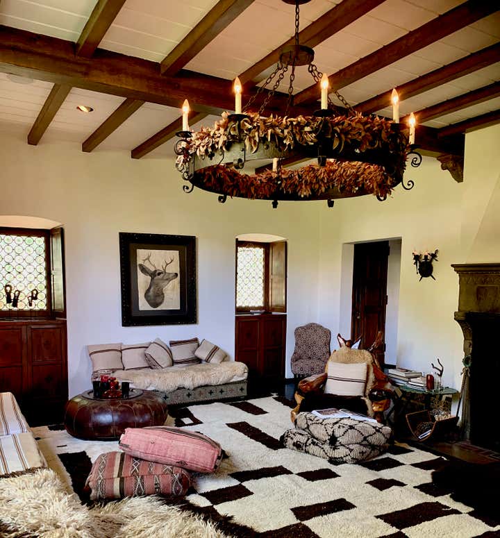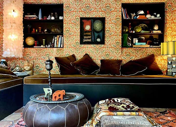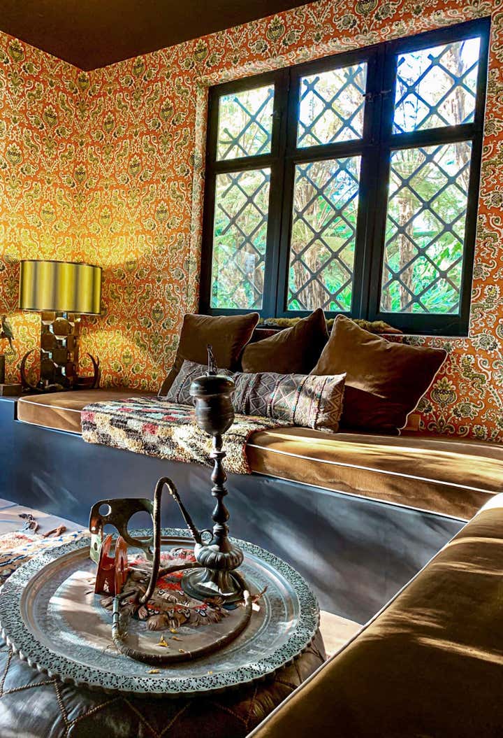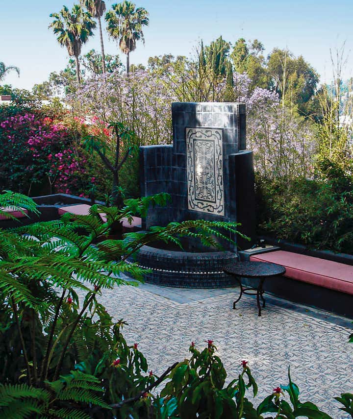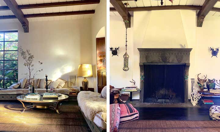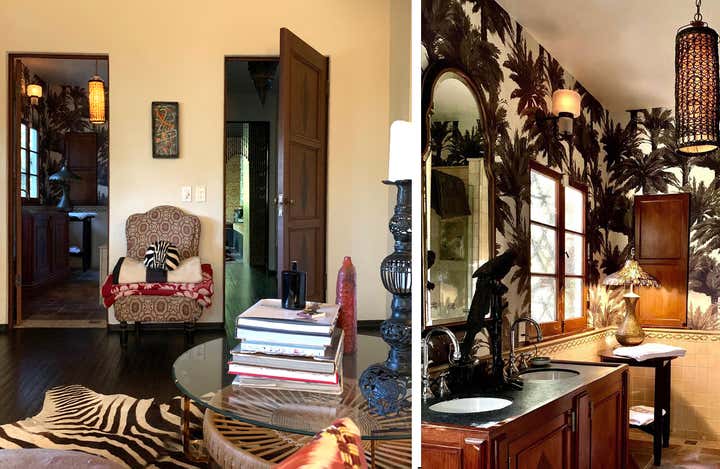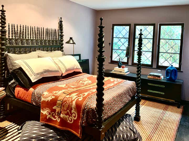 This intimate and unassuming Spanish Colonial Home in the Hollywood Hills houses textiles from around the globe, Collections of Venini glassware, Italian modernist pottery, and Mexican metalwork from the 1950s. The house defies a style label—with each room offering a discovery. Vintage wallpaper from Denmark, a wedding bed from Portugal, and antique African rugs complement the Collections. The common thread throughout the house is elegance, originality, and exuberance of pattern and texture. The gardens at the house were recently featured in T Magazine.