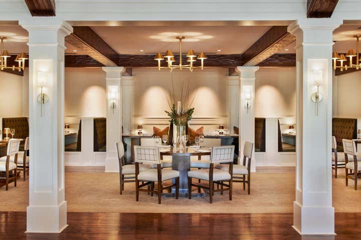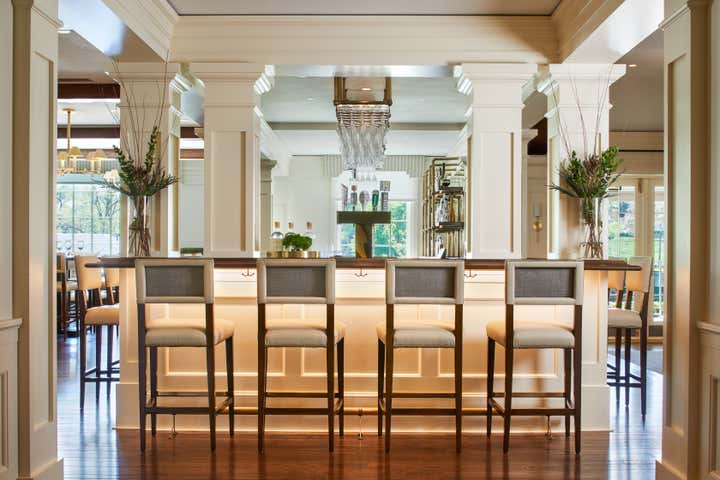 The oldest country club west of the Mississippi gives its main gathering space an elegant makeover. A series of hodgepodge design updates throughout its history had left the club’s main gathering space—the dining and bar area—lacking two pillars of a welcoming environment: cohesive style and a practical layout. The classic aesthetic of the club, along with some of its original design elements, was preserved while making it feel relevant to younger members.