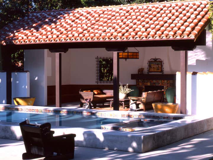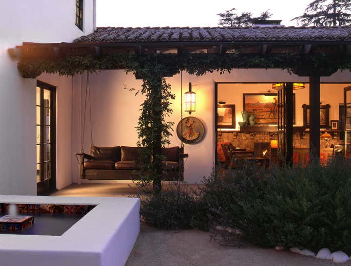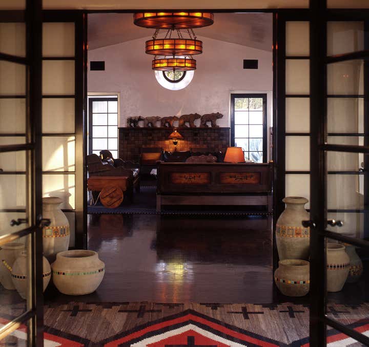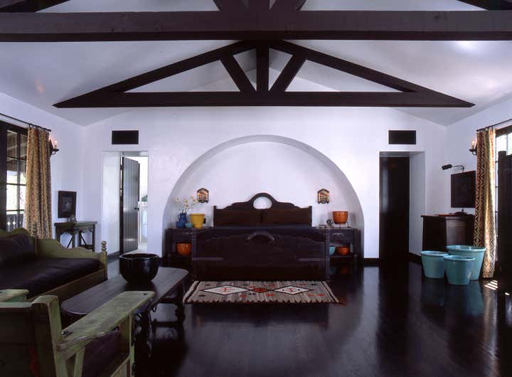 Once owned by director Peter Bogdanovich, this sprawling hacienda was redesigned and enlarged to accommodate Keaton’s growing family and to showcase her unique collections of vintage California furnishings and paintings. Recently, it had been faithfully recreated as the setting for the television show The New Normal.