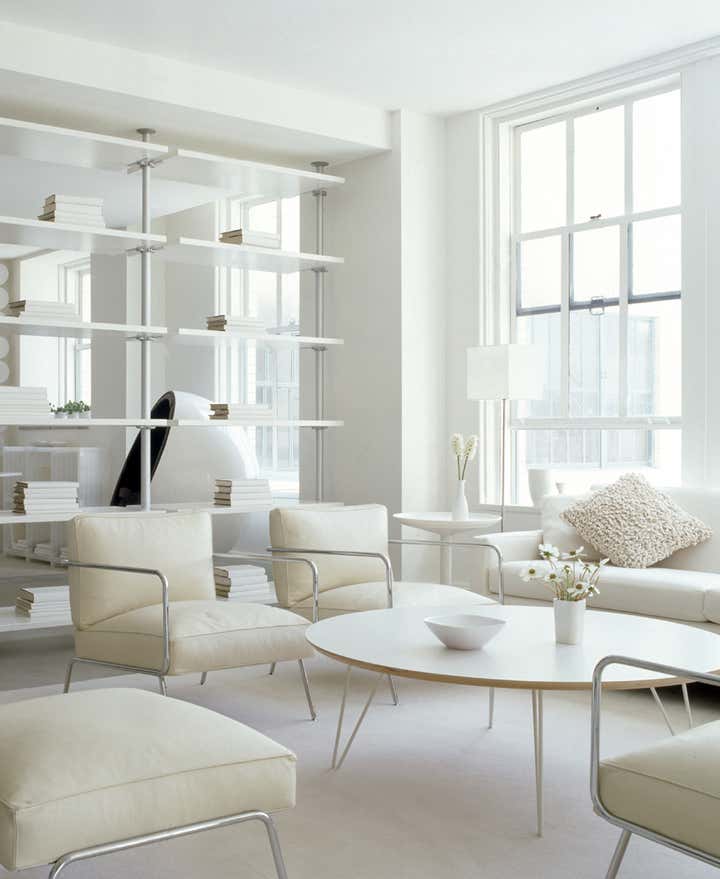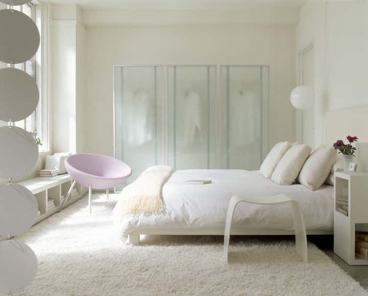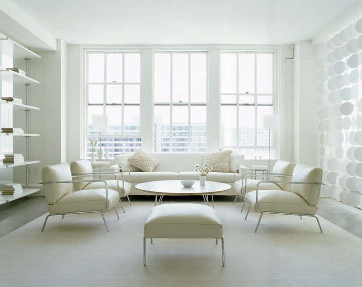 A handsome quietly mod loft in heart of downtown Los Angeles. Polished concrete floors, white kid leather upholstery and the simple linen slipcovered sofa create the perfect retreat from the busy city below.