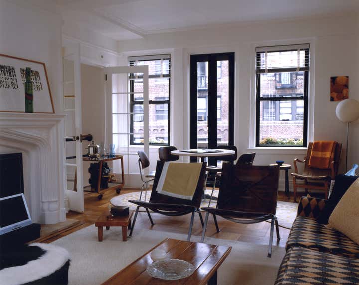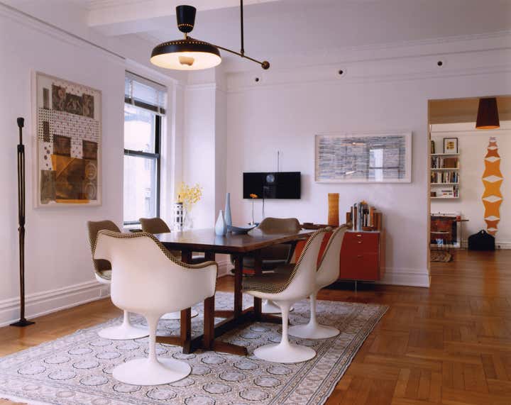 Like the townhouse typology in traditional cities, this duplex apartment combination in Greenwich Village was designed to support multiple habitation patterns over time. Both the 10th and 11th floors are connected by a steel and oak stair inspired by French 1940s furniture to create a townhouse in the sky.