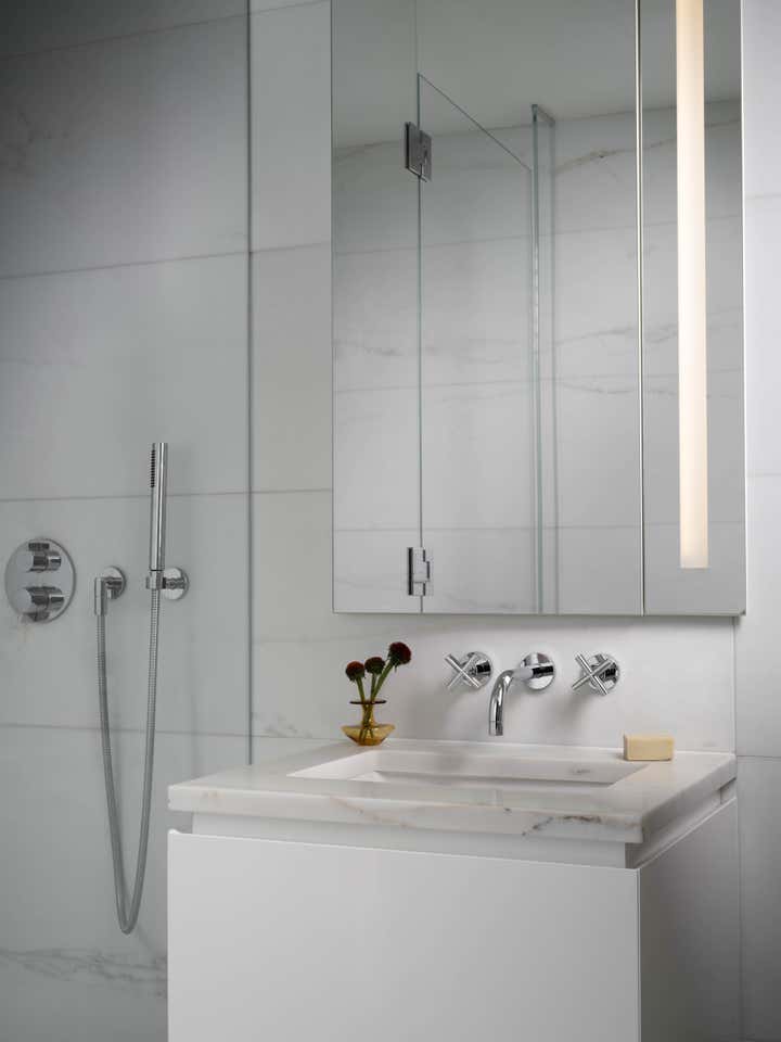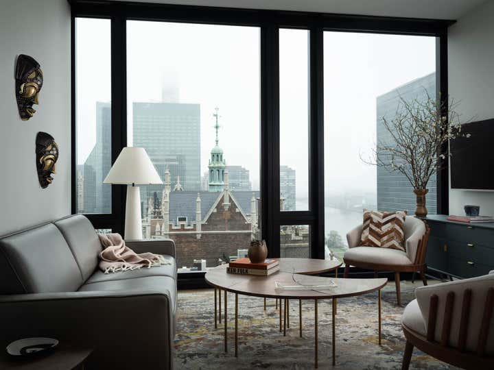 This 685 square foot pied-a-terre on the East Side of New York City is home away from home to a couple with 3 adult children. The design aesthetic is the ultimate in understated luxury – a casual yet chic home to lounge and have meals together as a family. The design even incorporates each of the family member’s favorite colors throughout the home.