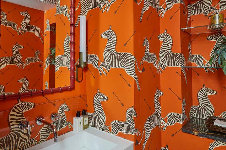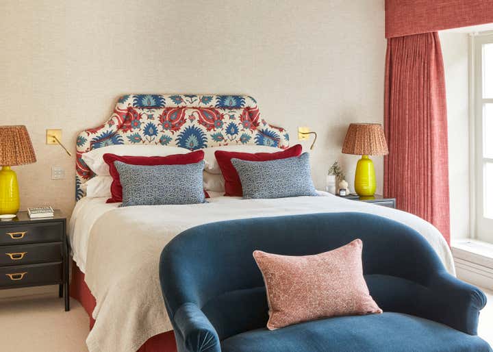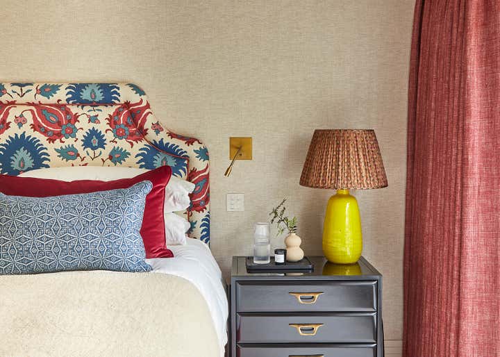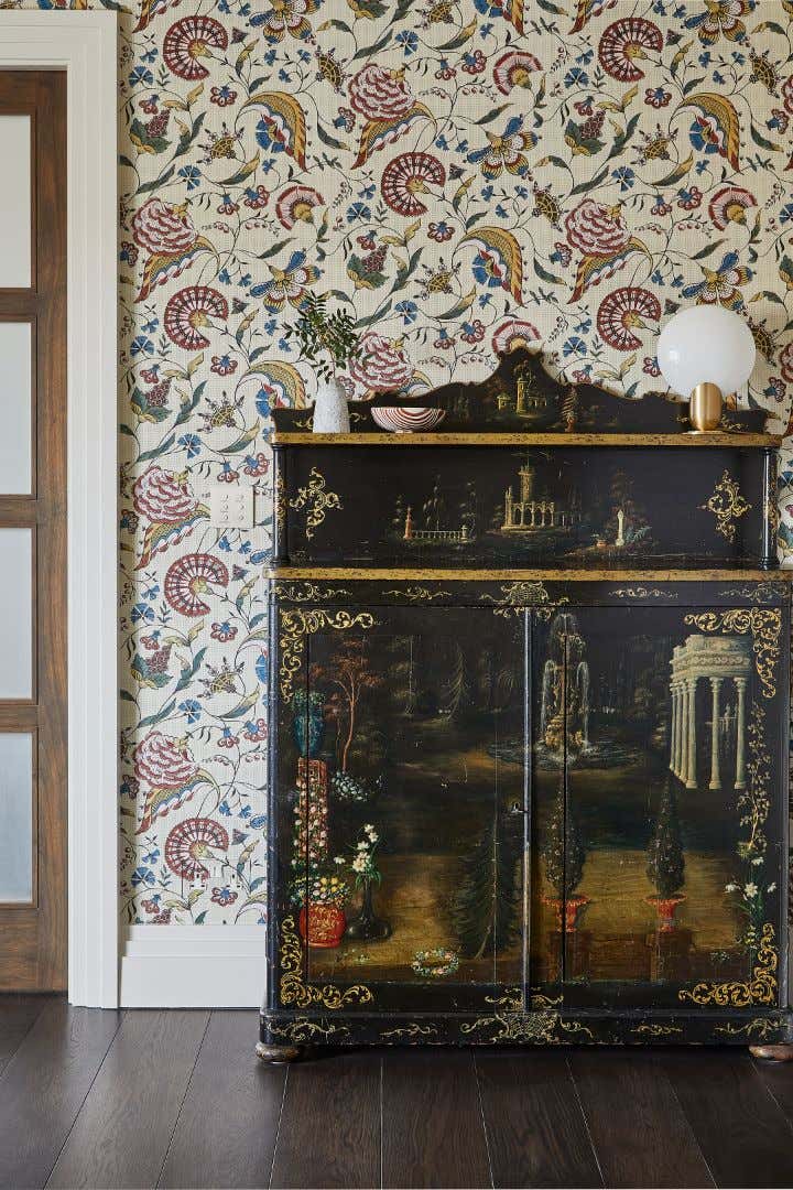 The client also provided plenty of other inspiration, sharing their favourite fabrics and inspirational images as well as accompanying us to antique fairs and dealers to select key pieces. The result is a colourful, exuberantly patterned scheme that has a welcoming, homely feel. And although most of this project focused on furniture, fittings and equipment we also designed and built bespoke joinery, refinished all floors and redesigned the master bathroom. We also created height and space in the dining room by elevating the ceiling and upgraded the AV and AC systems throughout. It’s testament to the closeness of the client relationship that developed over the course of the project that they meet up with Nicky whenever they are in town.