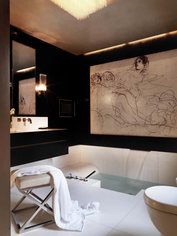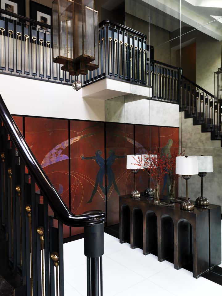 Janine Stone gave a fresh spirit to this elegant country house situated in a pretty English market town. The brief was to create a smart space for a couple who enjoy entertaining friends and family. The design manages to be sophisticated but comfortable at the same time. Beautiful detailing throughout is the signature of this chic interior – an indulgent sunken bath with dramatic waterfall fill, a handsome bronze staircase and stunning lighting sets the scene for the elegant entrance hall. The handsome inlaid wall treatments featuring decorative artisan panels and the subtle colour combinations of each room make for a timeless, harmonious environment.
