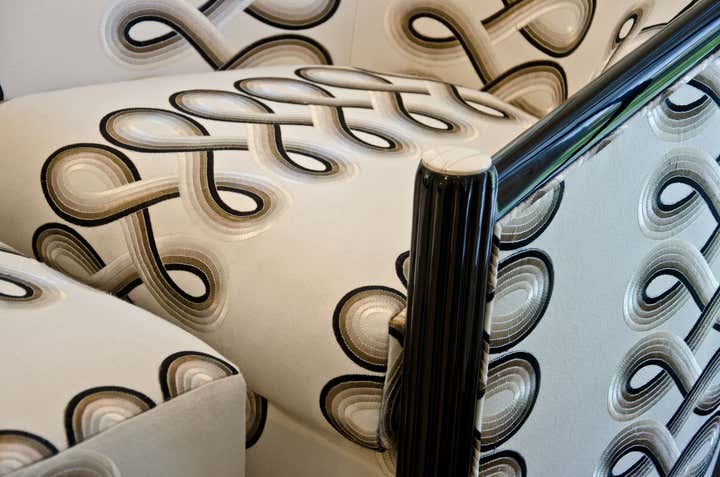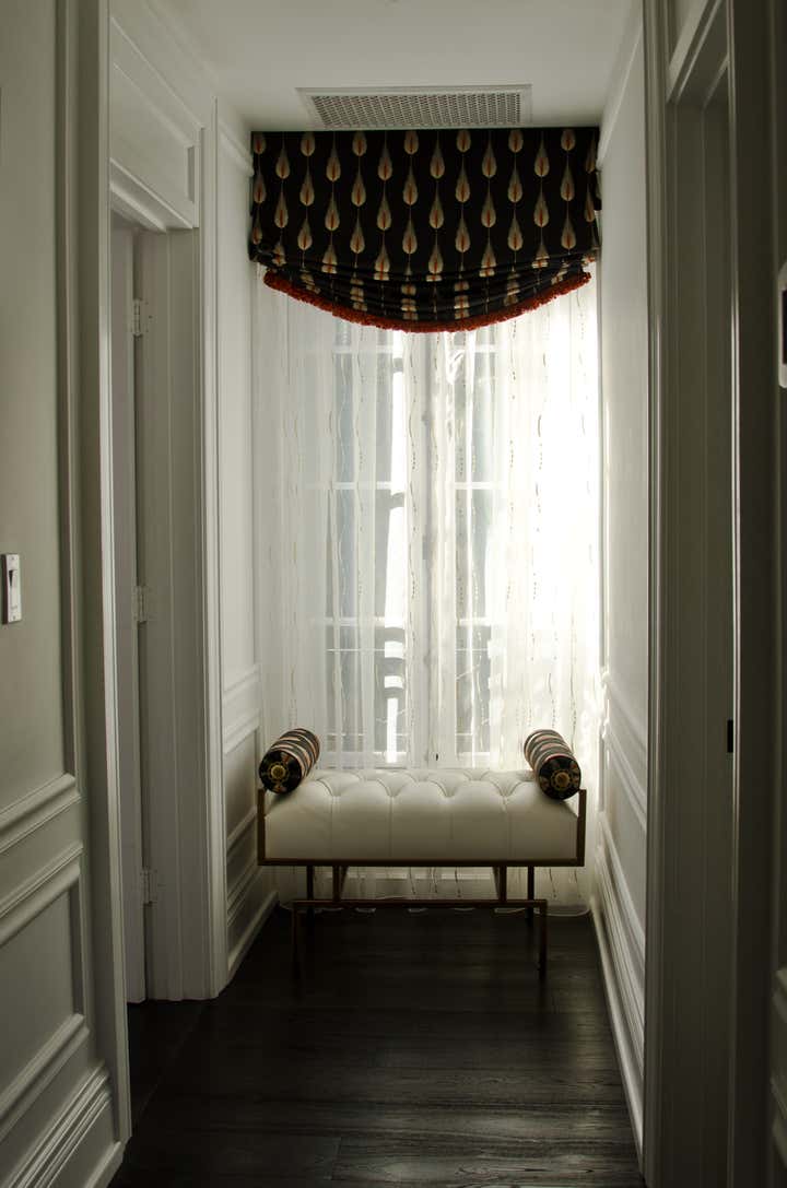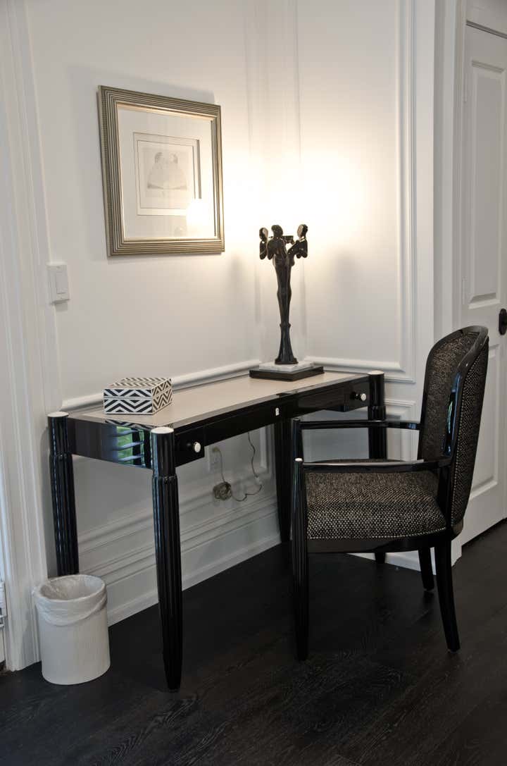 This residence is a second home to a client from the east coast. It affords warmth, luxury, comfort and entertainment space to the retired couple who like to visit children that live in the area. The home was originally built in the 1940 s and remodeled completely in 2017-18. The black and white base palette provided a perfect canvas upon which to build. The formal living room is reminiscent of a London lounge of the Art Deco period. Key areas are the extra island built in the family entertaining area and the media room featuring black out window treatments and comfortable leather reclining seating. His and her offices as well as a dedicated scrabble room are also key to suiting the family lifestyle.