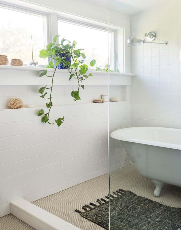 The architectural palette—a blend of painted floors, wood-clad columns, and fresh white baths—inspired our team to mix new and old furniture throughout the interiors. By melding pieces and materials from different eras, we turned the space into an homage to the past without giving preference to any particular era.