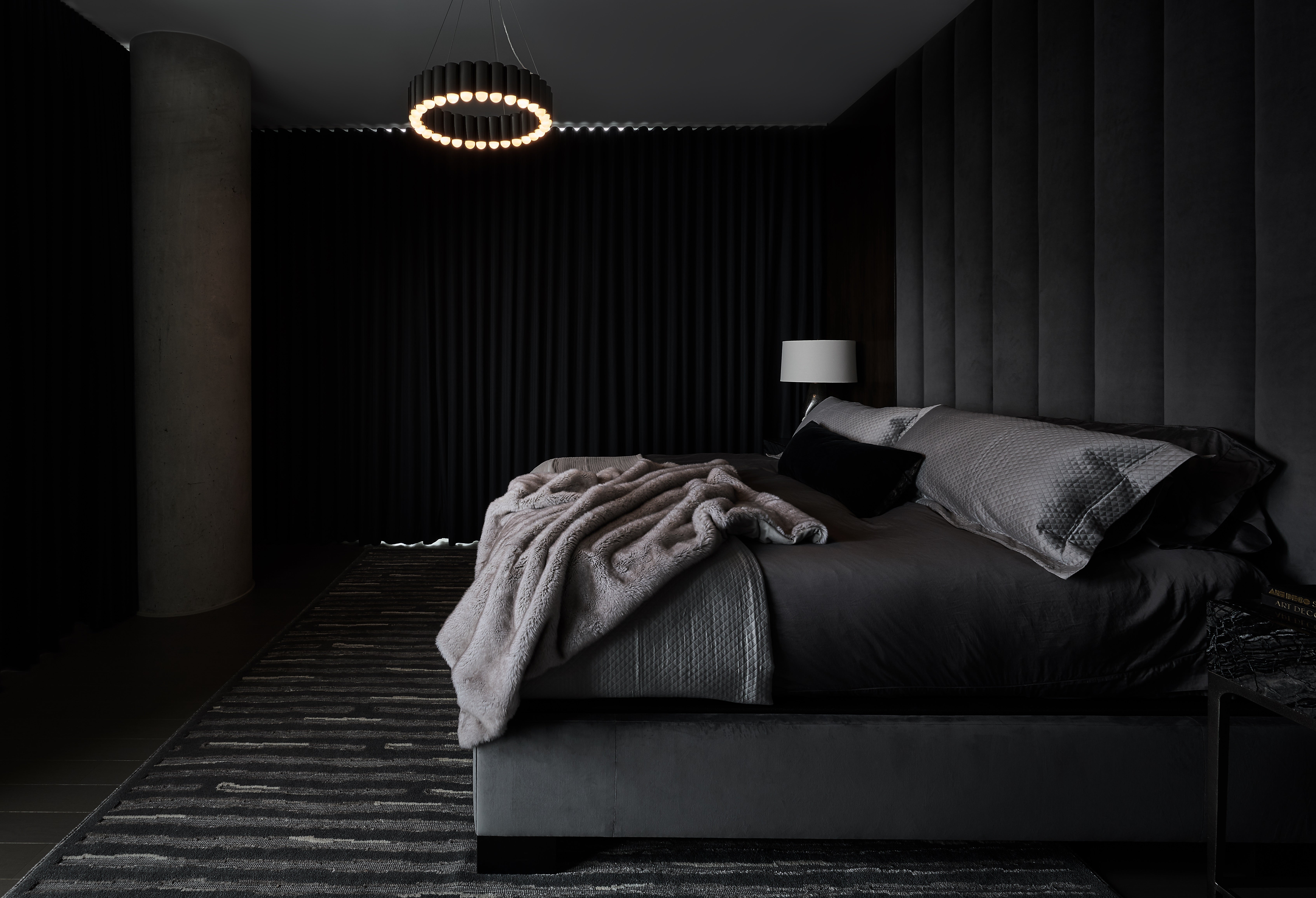 Making bold statements throughout this bachelor pad.