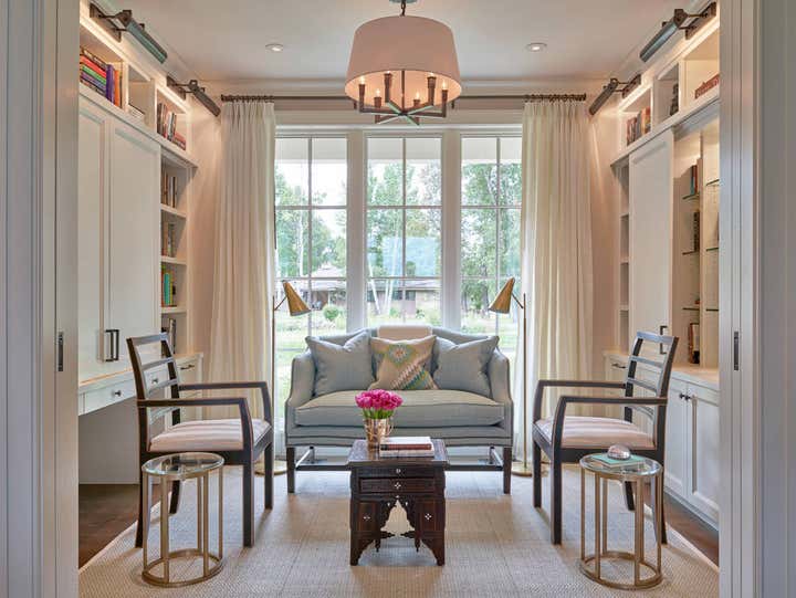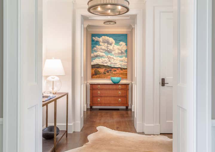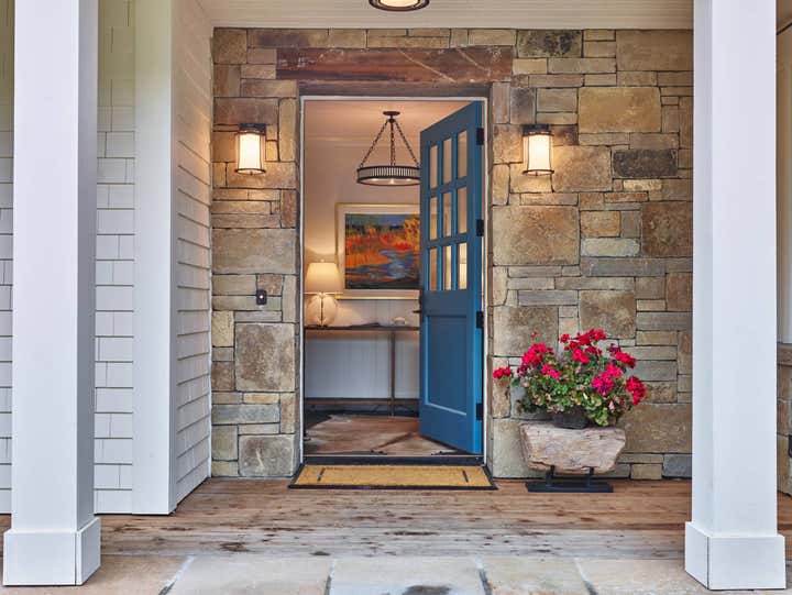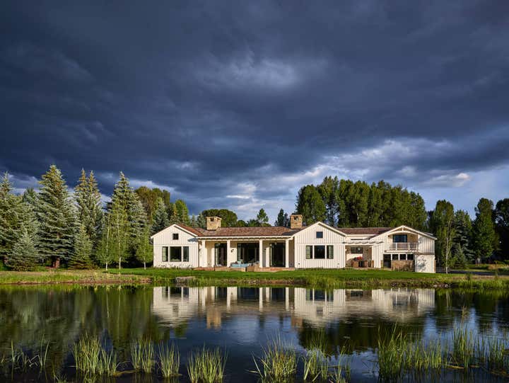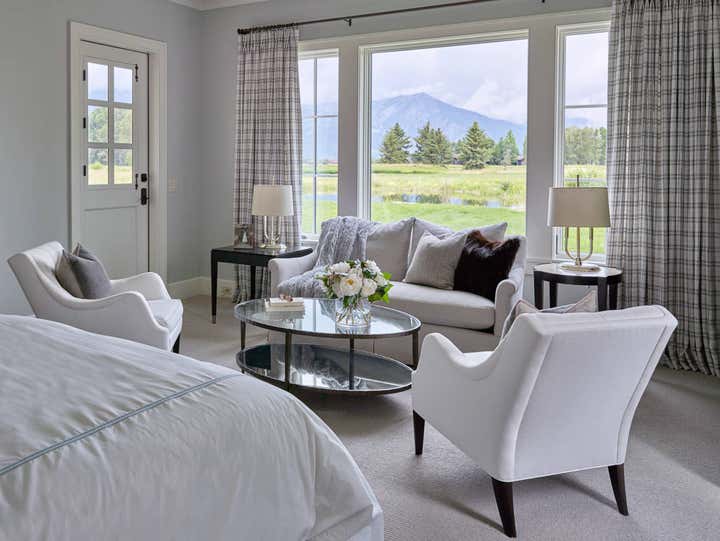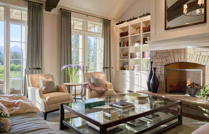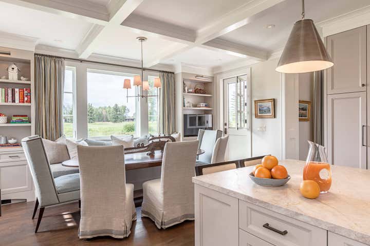 We achieve aesthetic harmony: by our design, East Coast elements balance the mountain immersion of Jackson Hole Golf Tennis. We informed every element of this new construction, from placing staircases to sourcing flooring and furnishings. | Architect: Shawn Ankeny, Contractor: Wilkinson-Montesano Builders, Landscape Architect: Agrostics, Inc.