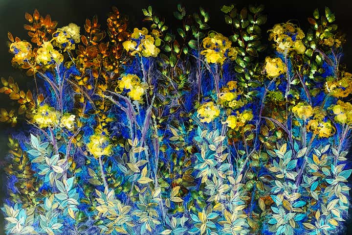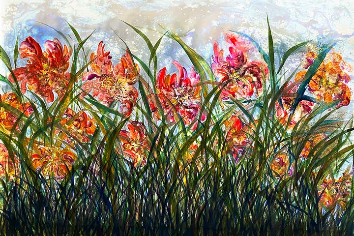 Floral 5 to 9, horizontal 60" x 40" photograph on Chrome_Lux white gloss aluminum, mounted on metal frame with D rings for ease of hanging on any surface. Price upon request.