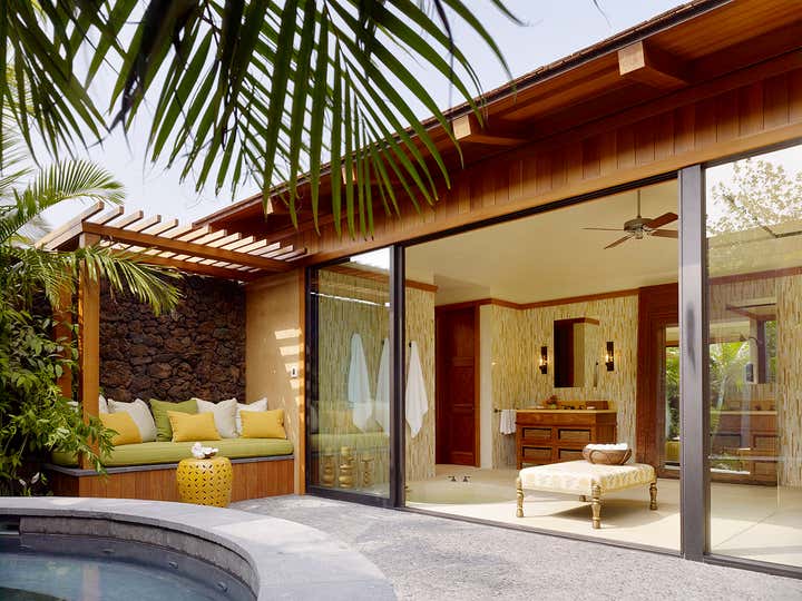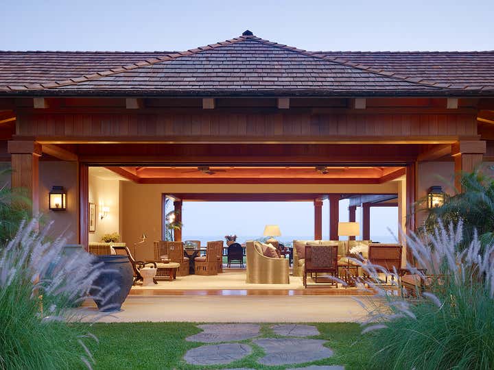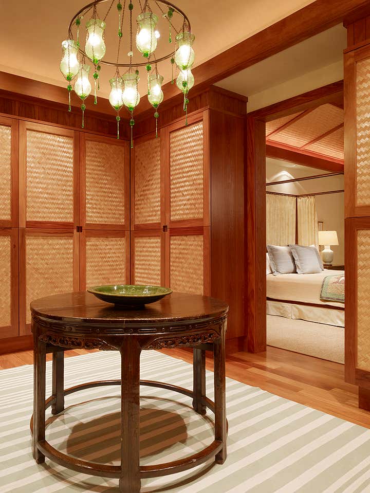 A custom built Hawaii home at five star resort with a tropical aesthetic and breathtaking views. The interiors showcase a subtle palette of natural materials juxtaposed against Chinese lacquer, wood inlays and organic textures.