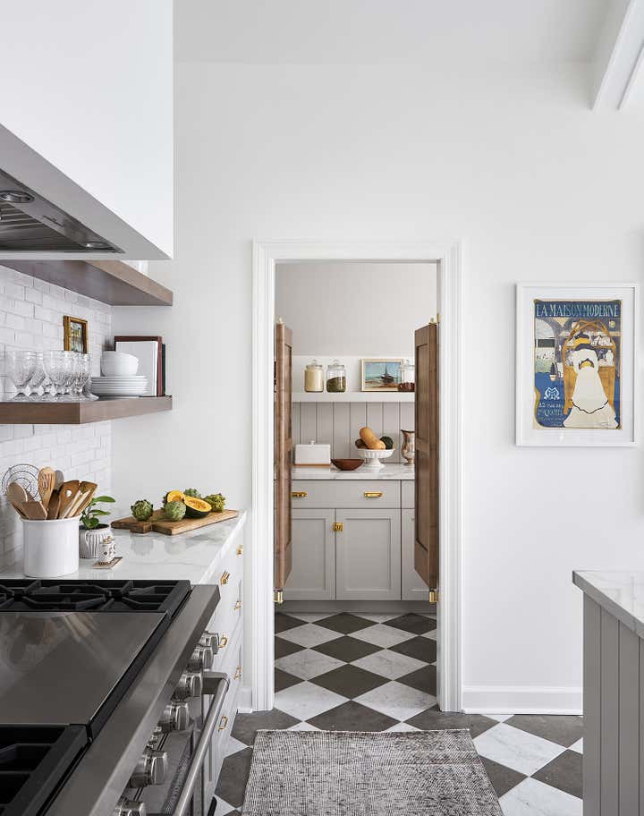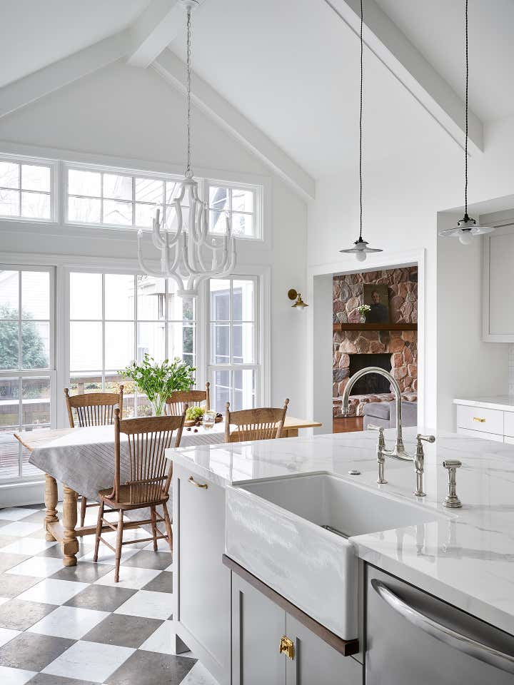 Our largest kitchen remodel yet, this kitchen, pantry, mudroom and laundry renovation was inspired by a trip to the South of France. Our clients came to us through an Instagram post and were thrilled to work together to renovate their older home for a more functional, and beautiful, space for their family. The original floor plan was choppy and unified, which we used to our advantage to create functional work rooms while opening up the kitchen and dining areas. Our clients had a long list of needs, like a cathedral ceiling and access to the side entry, which we were able to navigate through careful space planning. To keep things feeling cohesive, sourced complimentary materials through each space, differentiating them through custom details. Our clients are thrilled with the new floor plan and we will forever adore the bespoke quality of this home