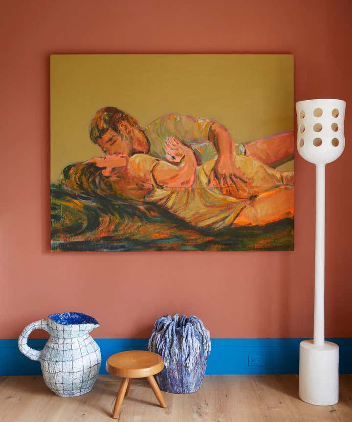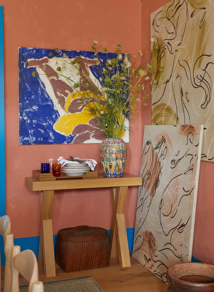 A departure in a time of reemergence and release. The blues are deeper, the wicker, less-studied. That terracotta says seaside, but the scheme references a moment that feels just out of reach. It’s a place we’ve longed for without the right words. An artist’s home, we think. Unfussed and well-lived, it’s as if they’ve stepped just out of frame to take in the rocky shore, a keen eye squinting in the sun.
