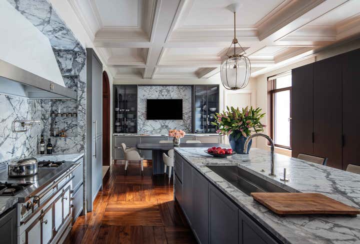 The design directive was to create a home that provided a backdrop for the couple’s extensive contemporary art collection while also sourcing bold furniture and fabric selections. We worked with von Weise Associates and Snaidero to design a new state of the art kitchen.