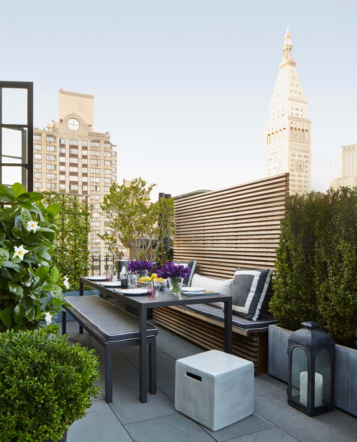 Creating a feeling of green and expanse beyond the room was the ultimate goal of this project--creating a room beyond the room with the terrace. My work has a sense of timelessness, but it’s also a bit modern—a little bit old and a little bit new. I aim for a clean, fresh classicism that has the openness of an Agnes Martin painting.