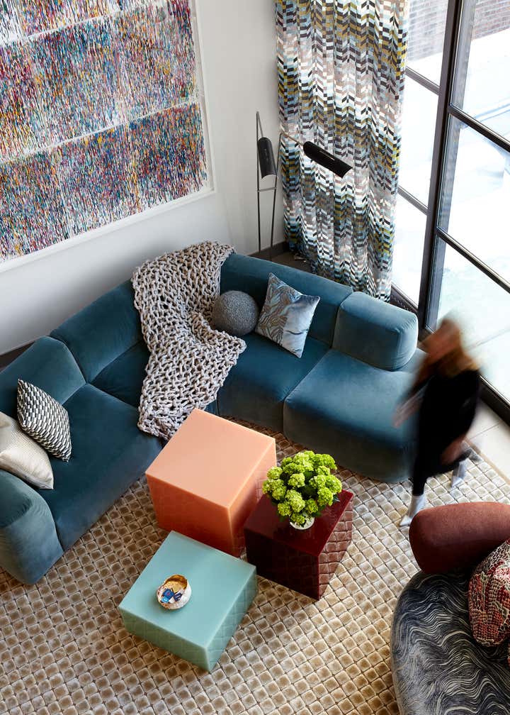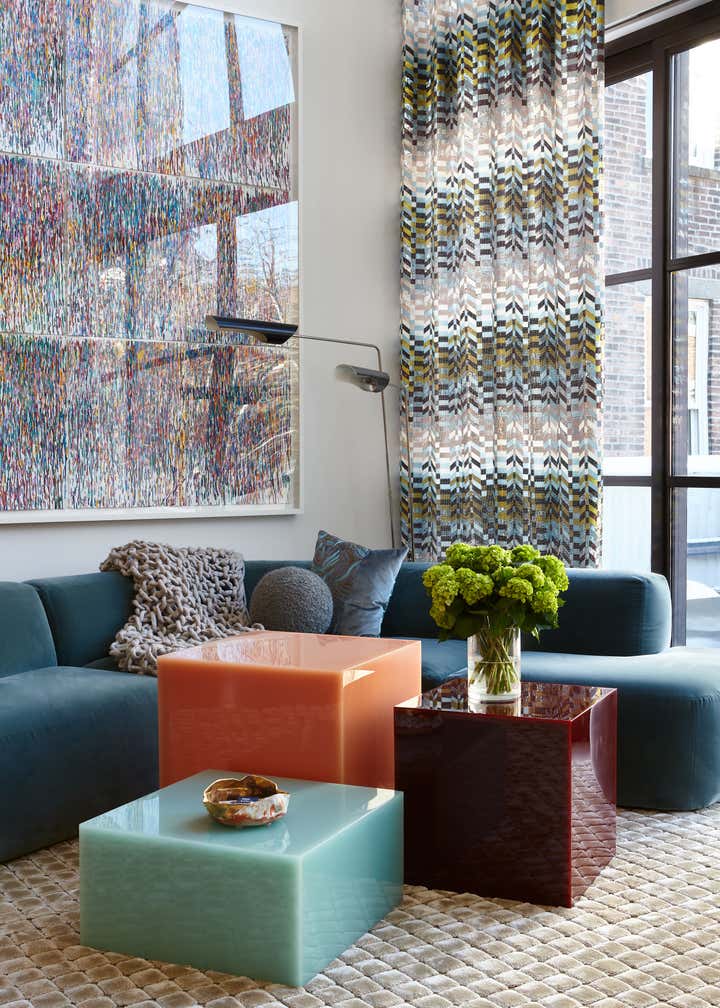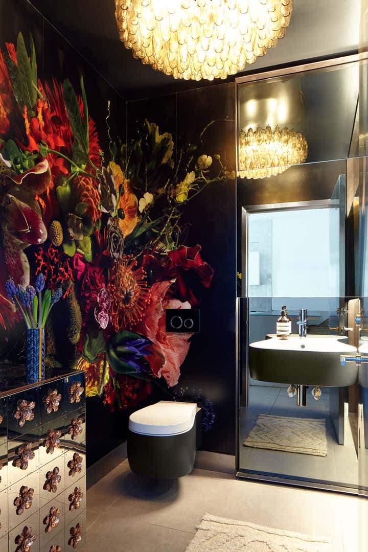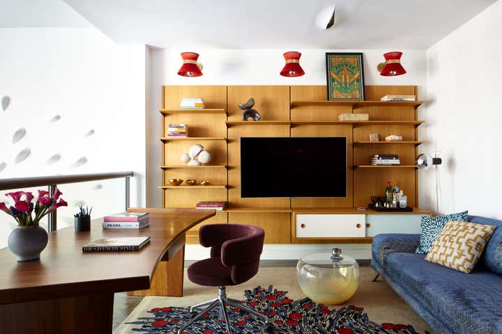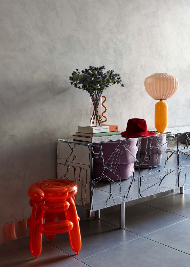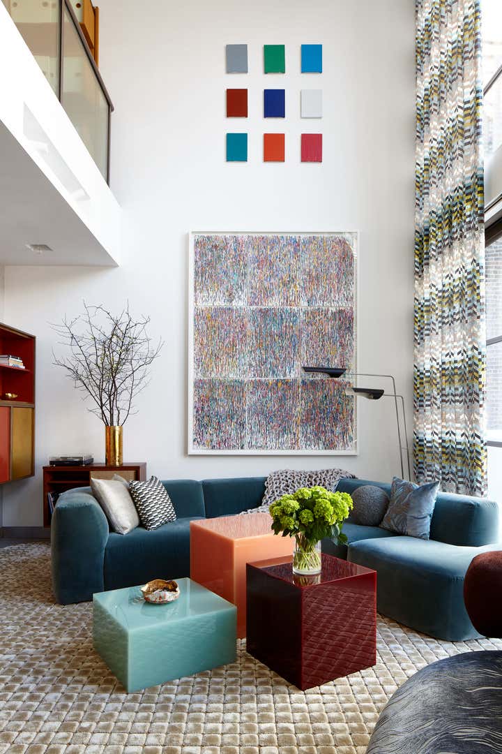 Custom-commissioned works of art and design offer moments of surprise and reflect the homeowner’s personality: from dramatic, floor-to-ceiling sequin-embroidered drapes; to an Ini Archibong-designed chandelier composed of gleaming, multi-colored glass pendants; and a diptych by Kelly Reemtsen.