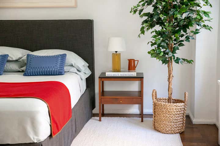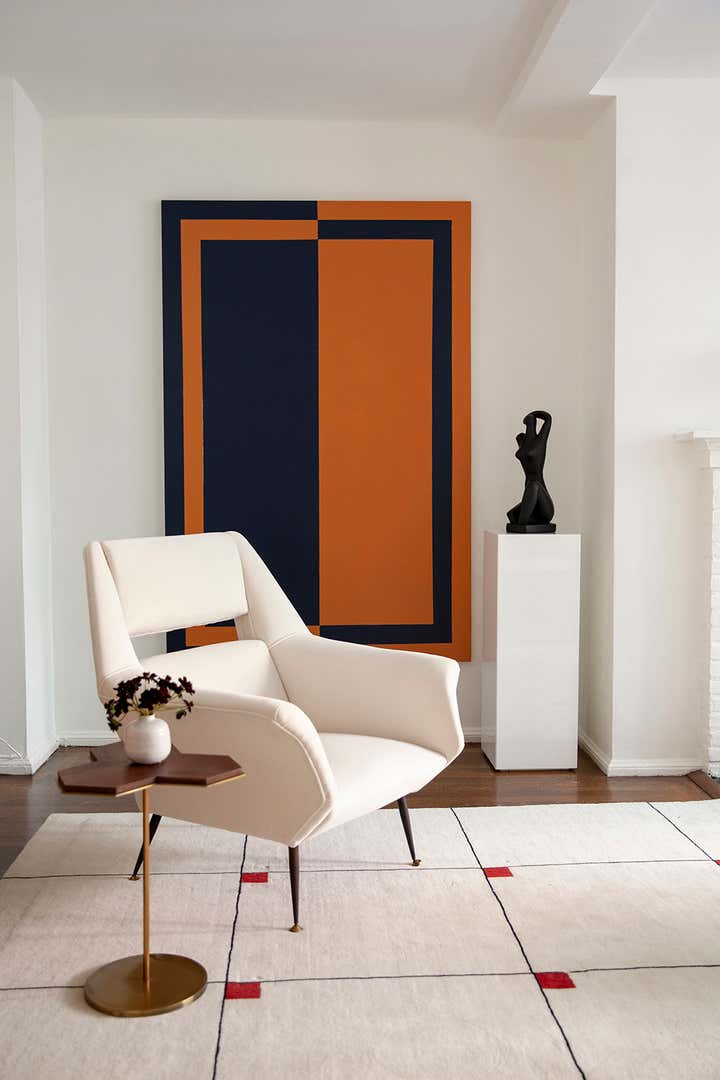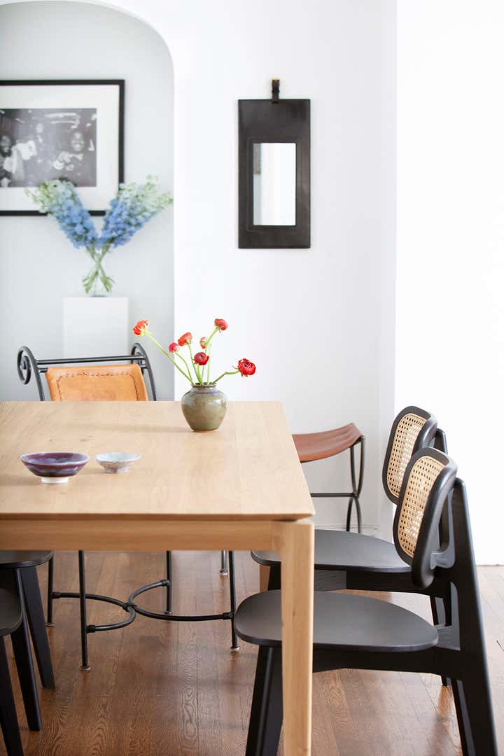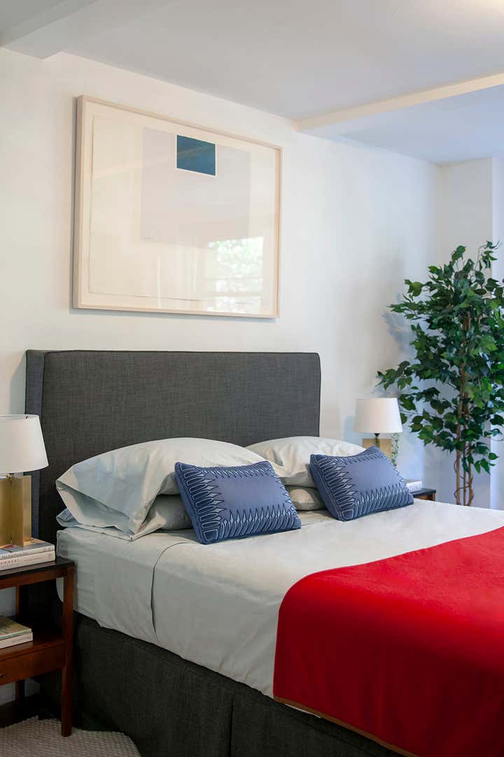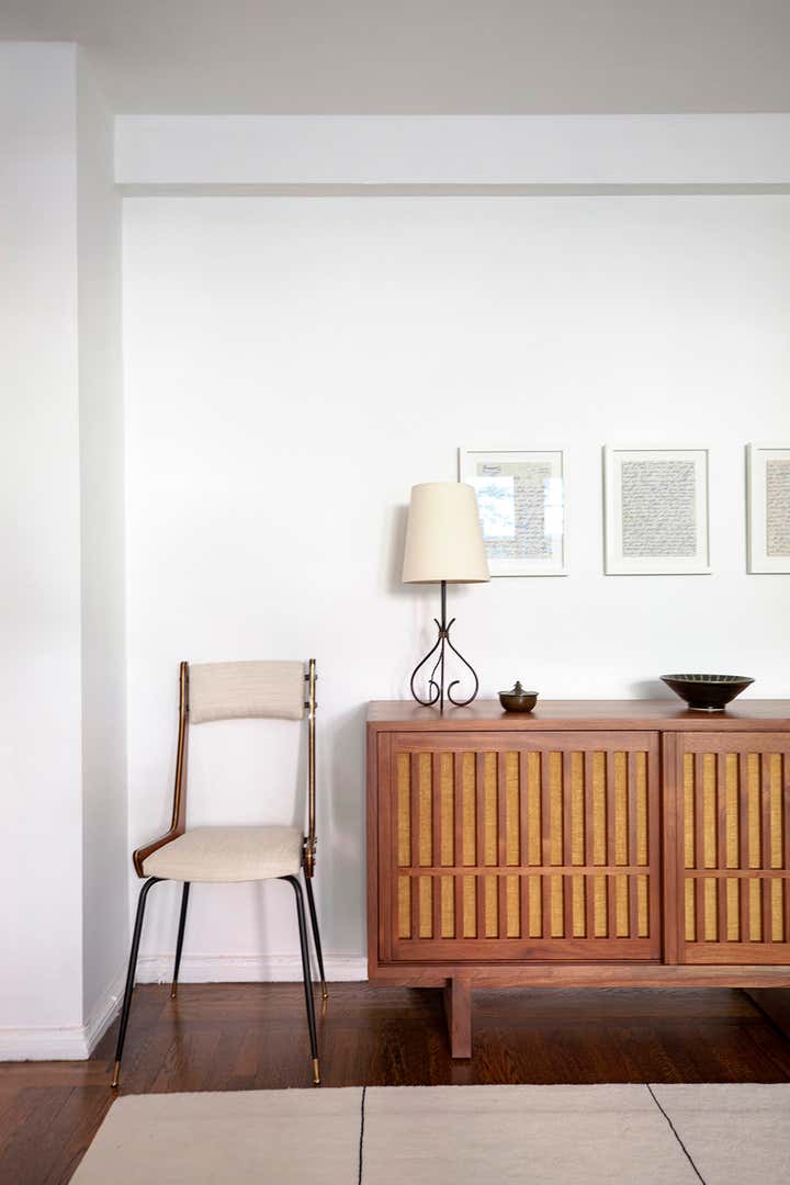 Located within one of Emery Roth’s iconic New York City buildings, this Art Deco apartment balances history and modernity. Expressive art, color bursts, like cornflower-blue pillows and cherry-red accents, along with bold embellishments--intricate woodwork, woven seating and a slatted mid-century modern credenza--all blend in this designer’s home. But how do these elements harmonize? The space between the pieces is carefully considered so the rooms breathe, allowing each object to stand out. The result is an informed homage, updated with contemporary components.