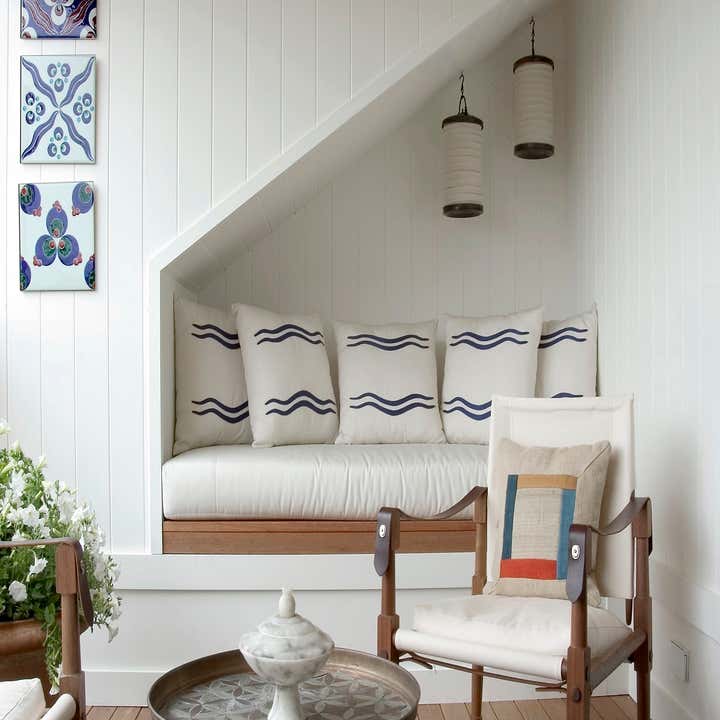 An idyllic set for an ocean-side retreat, these rooms showcase the light hand and refined eye so true to this designer’s aesthetic. The eclectic décor makes fine use of the furniture, fabrics, and accessories by combining different styles and origins, without forgoing simplicity. Inviting and sublimely comfortable, it’s the ideal setting to indulge any fantasy. “Sara kept things simple and unpretentious, and sublimely comfortable.”