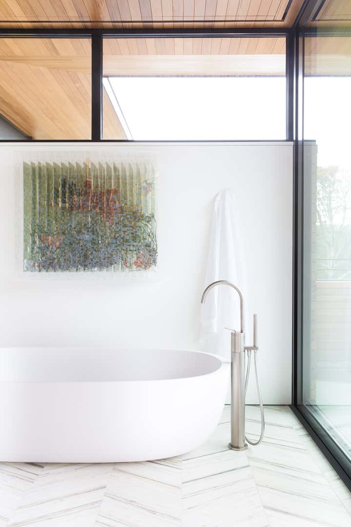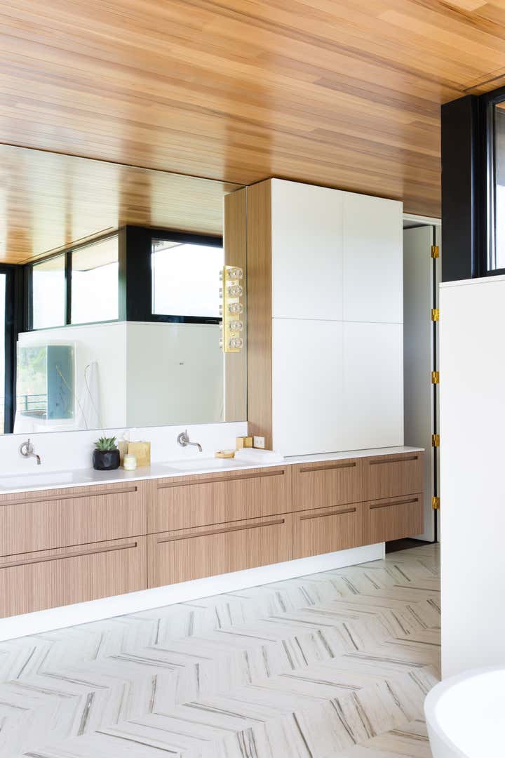 A contemporary home built from the ground up for a couple in the music industry, this project is our most extensive to date. Some of our favorite touches will include an HSH Interiors custom designed steel and bronze-clad fireplace, a jewelry-grade turquoise backsplash in the kitchen, and dreamworthy his and hers dressing rooms.