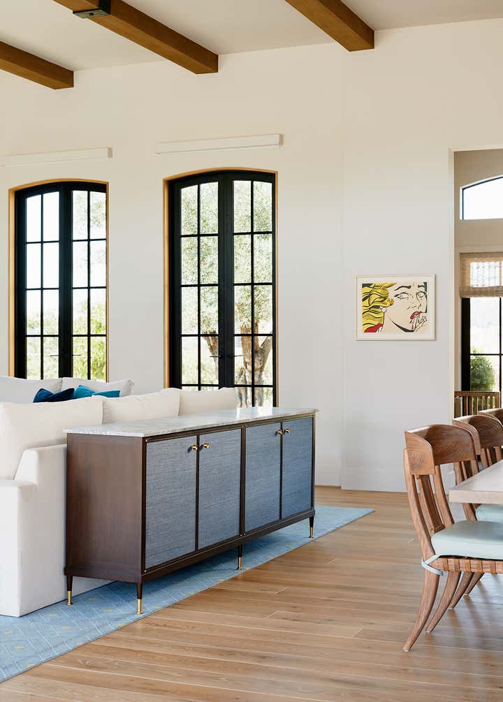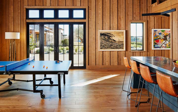 A newly retired couple’s custom built home in the heart of Sonoma’s wine country. While the house was being built it was nearly lost in the devastating wildfires in Sonoma County in 2017. Owner took a new approach to this home and worked with Angus | McCaffrey to curate an almost entirely new art collection just for this home. Owner is fond of color and the brief was to incorporate fun notes and still nod to the landscape while not letting the country vibes rule the design decisions. The husband, in his spare time is a competitive ping pong player so a location that could be dedicated to the sport was a must. The “barn” holds another guest suite, a kitchen for entertainment and space for ping pong practice.