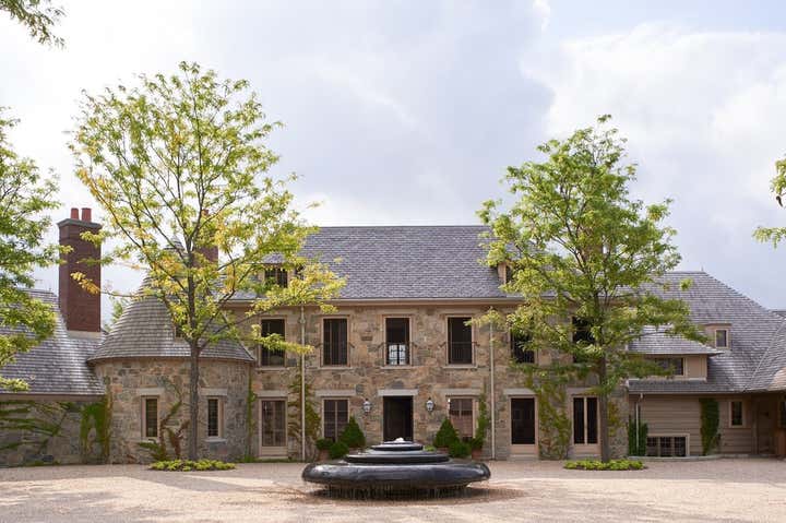 A former dairy farm is reimagined as an escape from city life. A place that feels like escaping to Italy or France yet only two hours from New York City. A dream realized the farm hosts a working vineyard, stables, ice hockey for the winter, tennis court in the summer, squash courts, and racquetball. Architecture By Reese Owens Architects. Construction by E.M.Rose Construction. Photos By William Waldron.