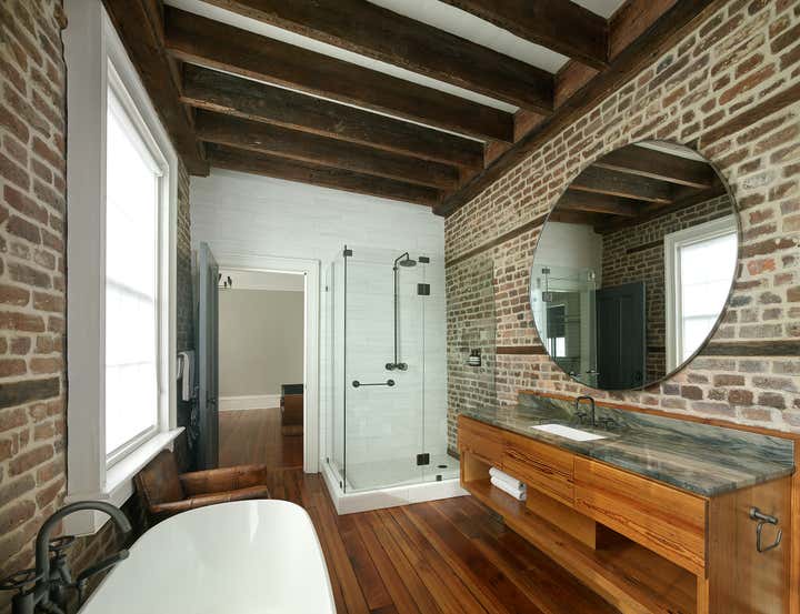 The reinvention of a significant 1830’s residence in Charleston’s Historic District negotiates and balances the building’s history, with a desire for a forward-looking, contemporary residence. As part of a larger historic restoration effort that replicated millwork and architectural details throughout, the contemporary addition was intended to be its dichotomy. Chalky white limed stucco walls, handmade floor tiles and sleek marble counters, give movement and interest to an otherwise minimal additions.