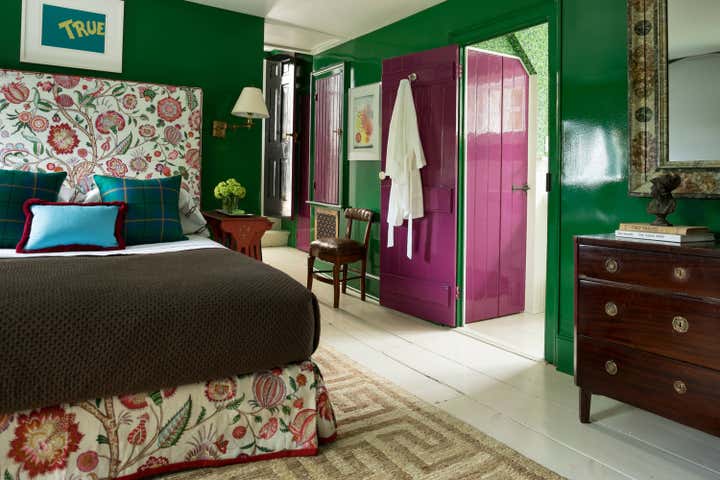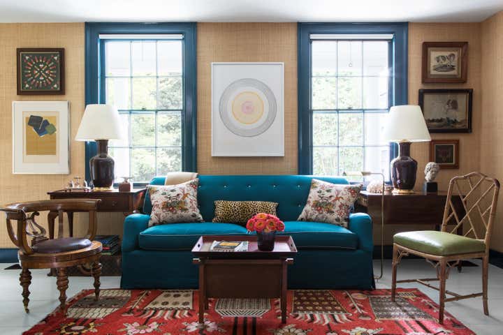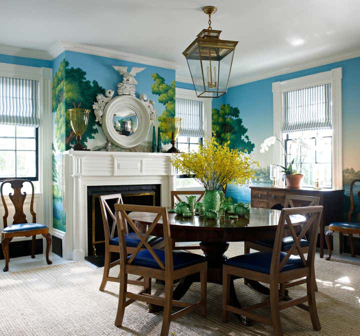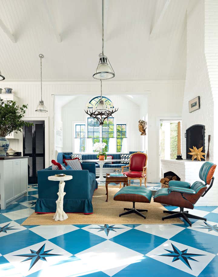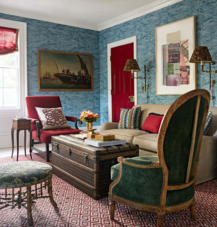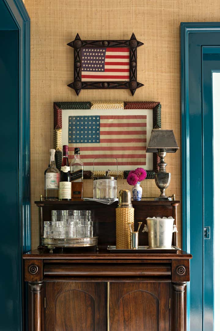 Published in Traditional Home s Jan/Feb 2019 issue, this historic Sag Harbor home was built in 1810 and is rich with original architectural details. Custom painted finishes and an expert mix of antiques and bold upholstery fabrics combine to offer a fresh take on the traditional nautical Hamptons aesthetic.