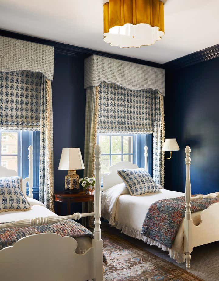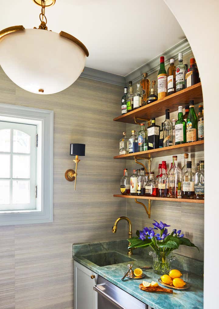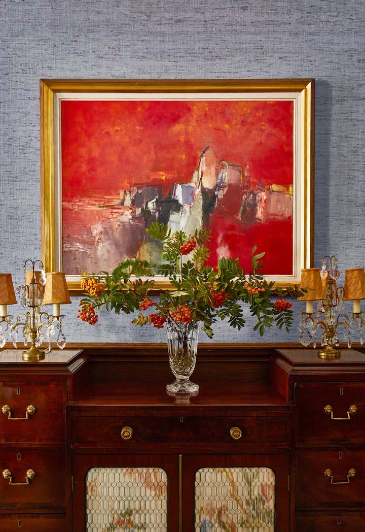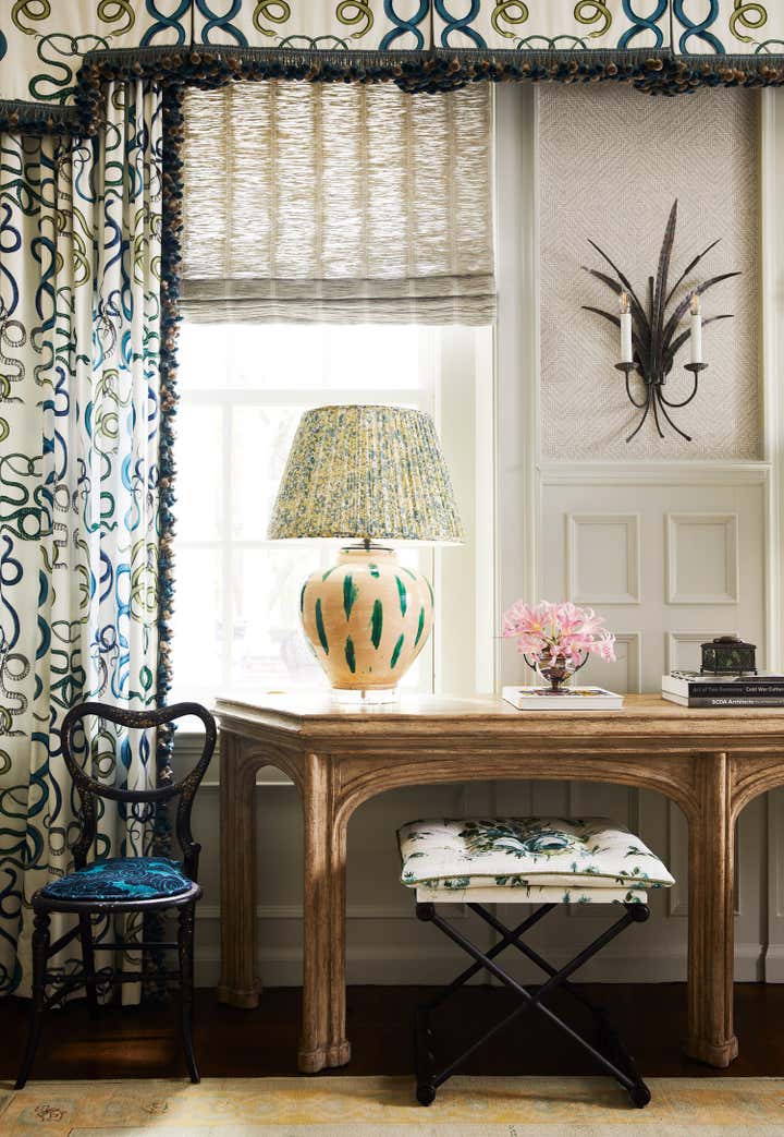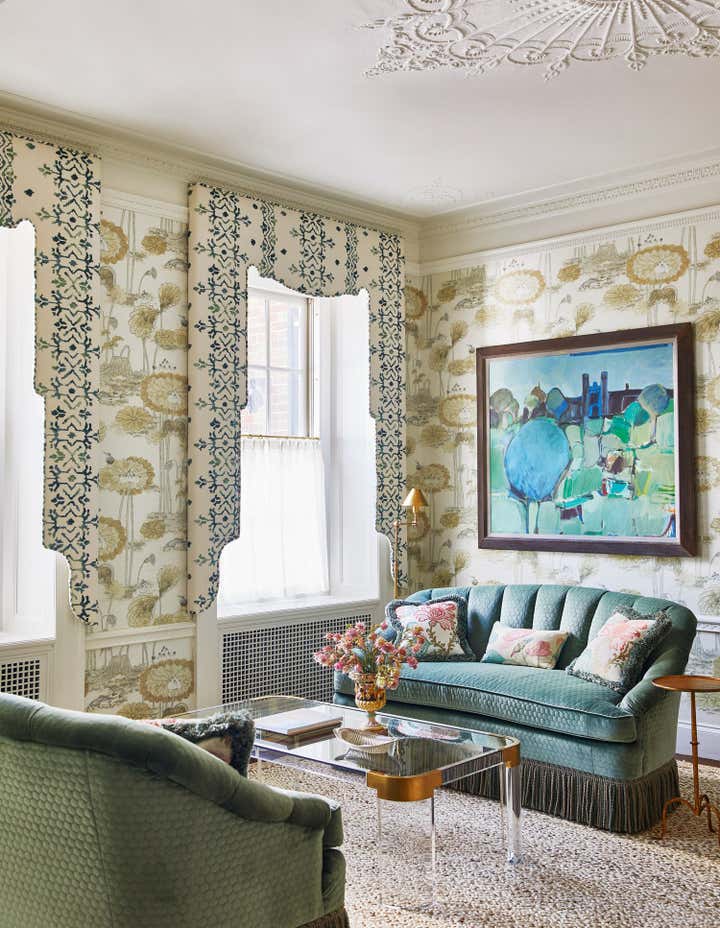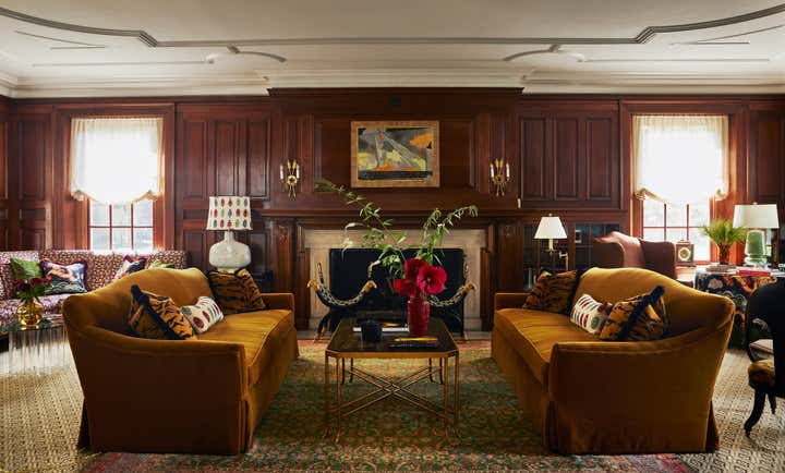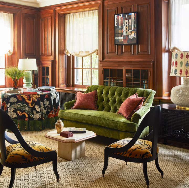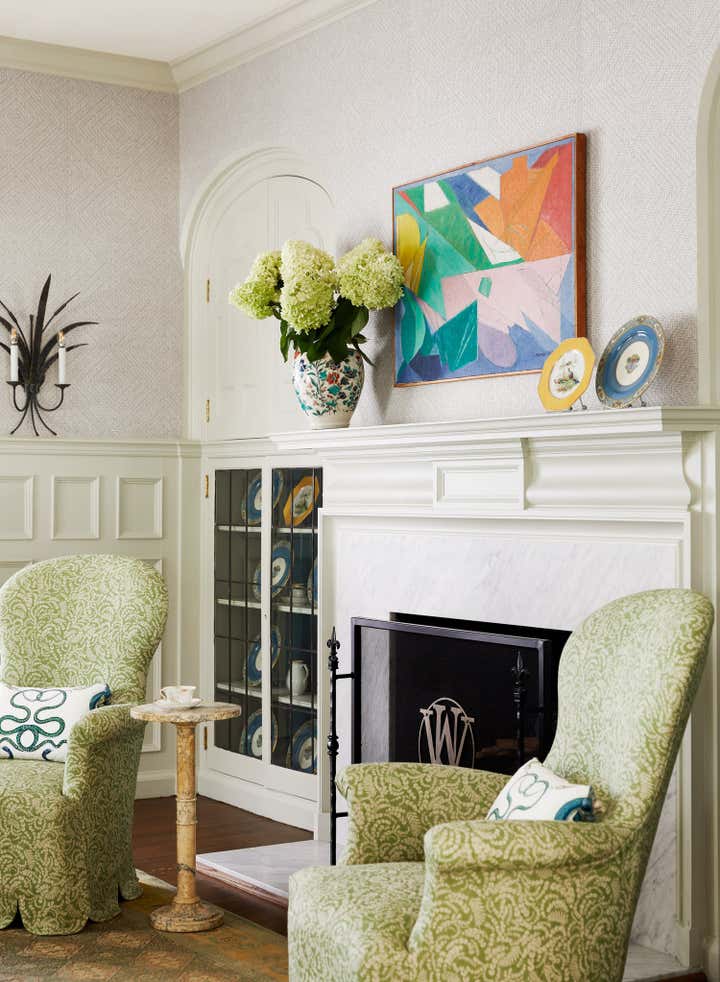 Originally built in 1912 in St. Louis, Missouri, this remarkable architectural home underwent a significant renovation in collaboration with Bower Leet Design. Ramsay Nye oversaw the complete renovation and decoration of the 15,000 square foot residence, alongside the restoration of important architectural elements such as millwork, plaster moldings, and elaborate ceiling details. The meticulous attention to detail is clear upon entering the foyer, which showcases a striking silk wallcovering, an antique Murano chandelier, and a lacquered zebrawood center table. The dining room features a bespoke, hand-painted chinoiserie wallpaper in the client s preferred buttery yellow, incorporating the Missouri state tree, flower, bird, and butterfly. As avid entertainers with a penchant for vibrant dinner parties, Ramsay Nye created a design narrative that ensured the various common rooms had distinct personalities, so guests could feel transported.