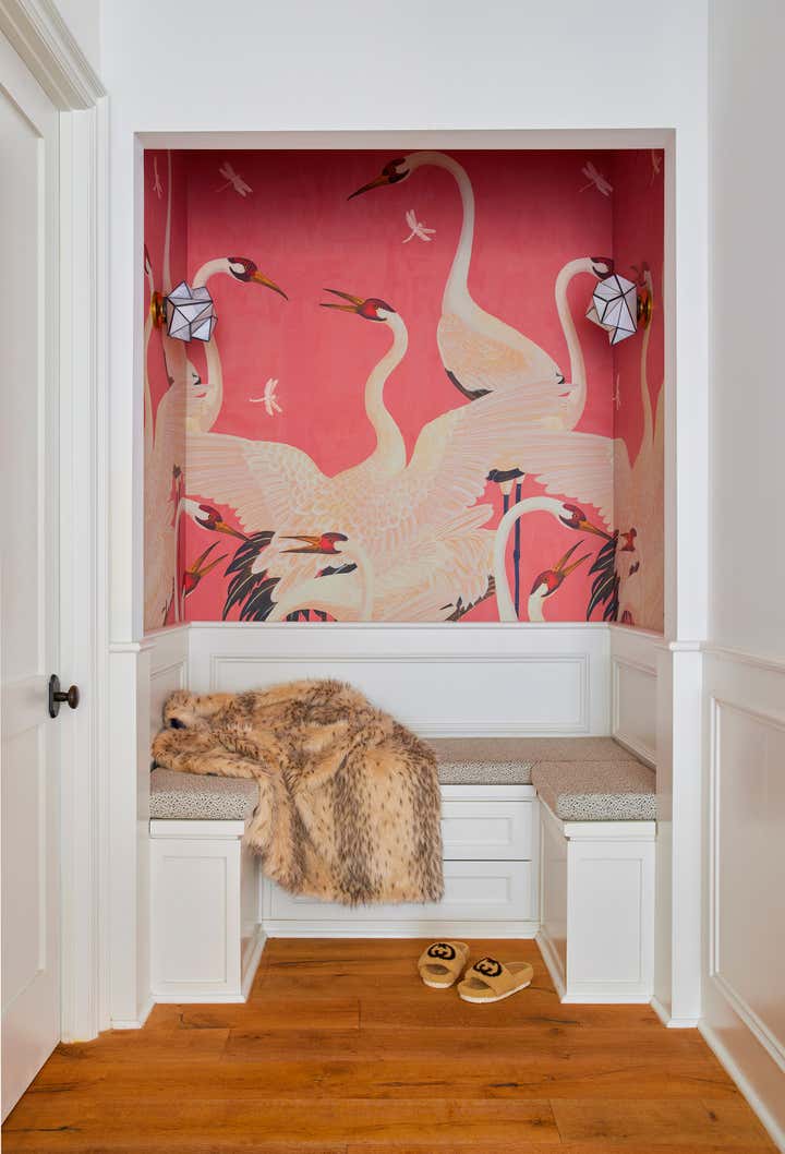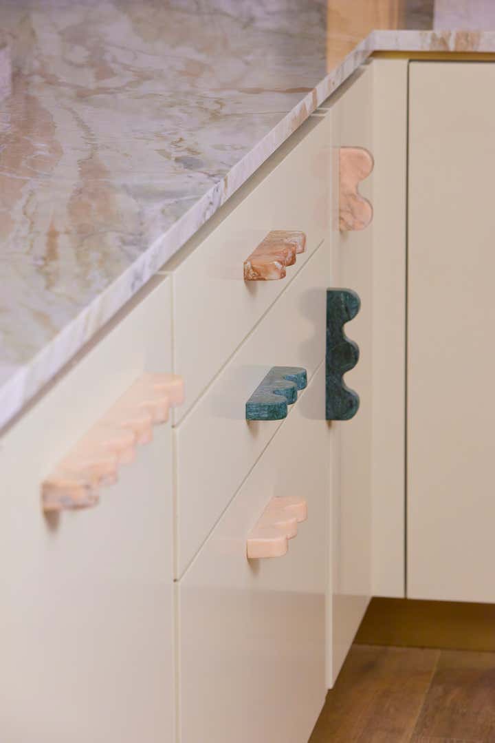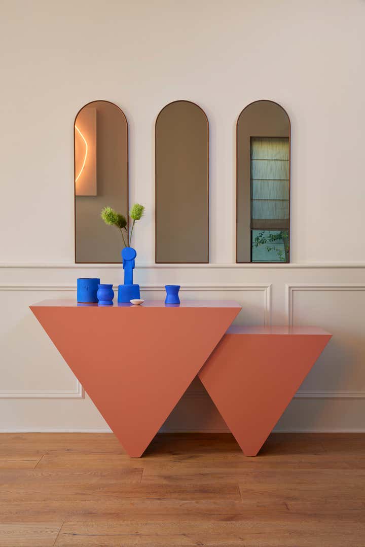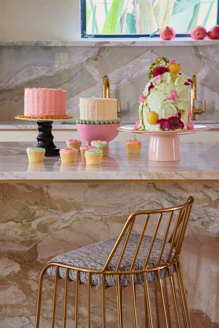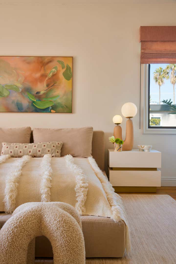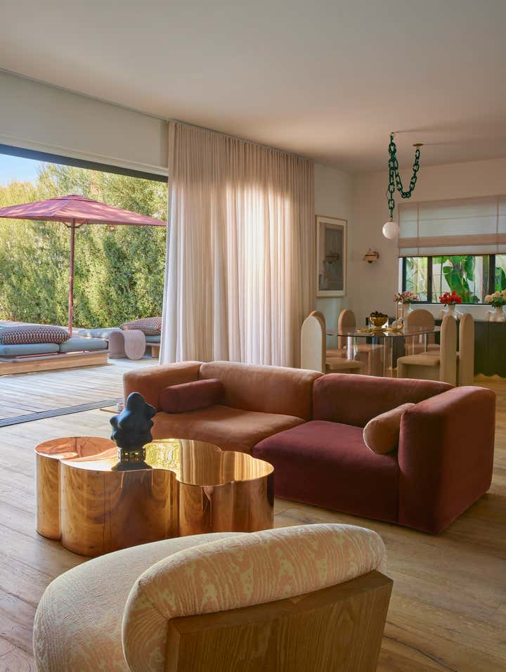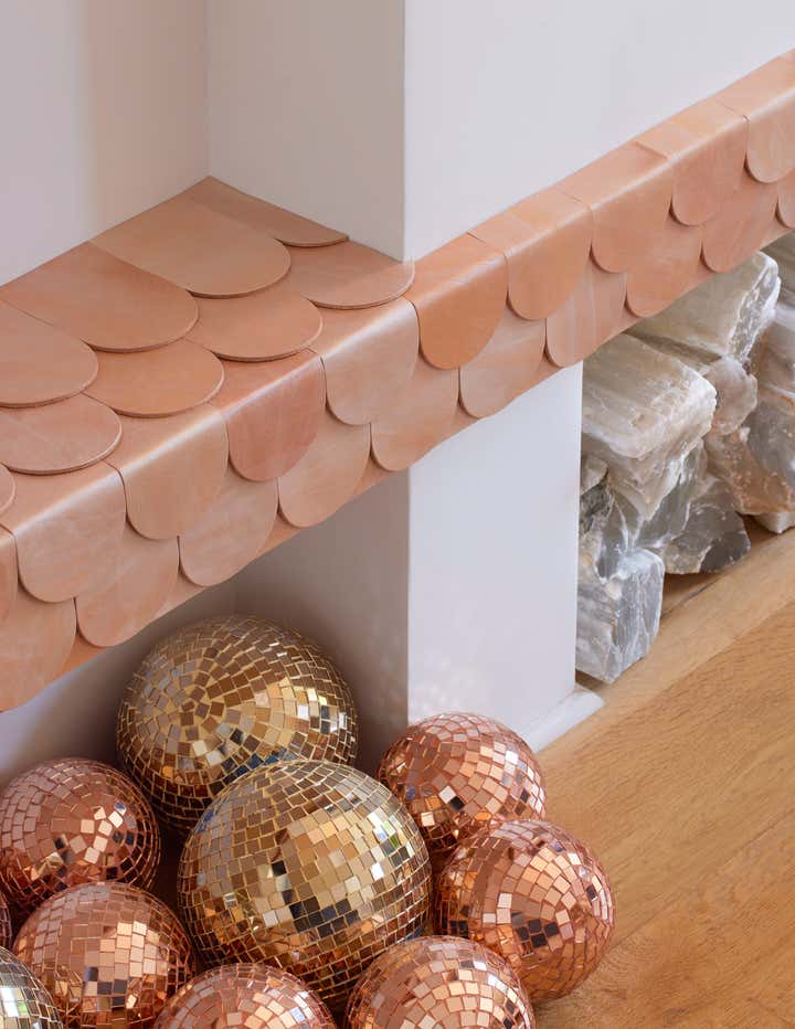 beauty industry. We combined her style influences - Alexander McQueen and Jean Harlow - with modern silhouettes and nods to her electric humor and polished upbringing for a feminine, bold and unexpected design that seamlessly transitions from gentle morning sunrises to lively impromptu soirees. The living room buzzes with cozy boutique hotel energy; the kitchen dazzles with decadently rich blush tones and brass; and the intimately bespoke rooftop lounge boasts all the playfully poetic touches of every host’s dream. This made-to-order love affair celebrates the fusion of creativity and craftsmanship for an adventurously timeless home.