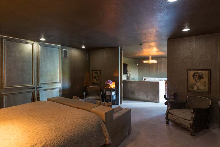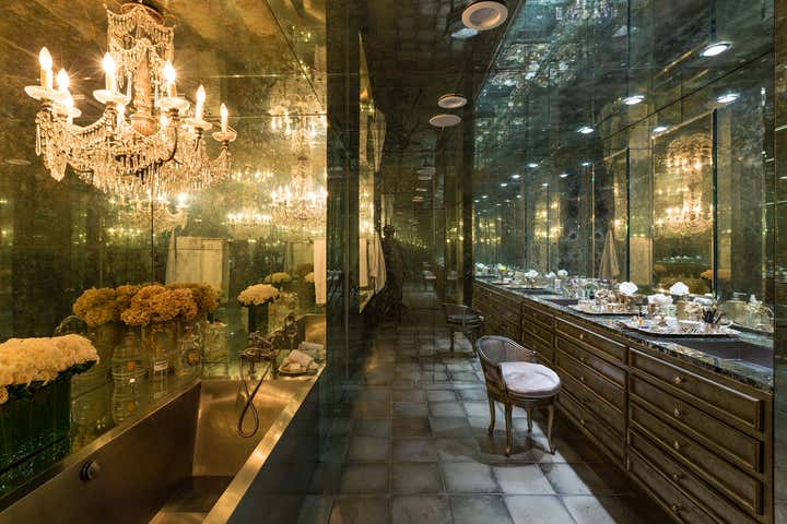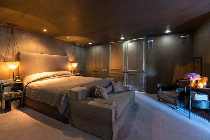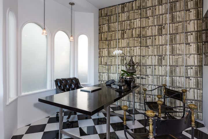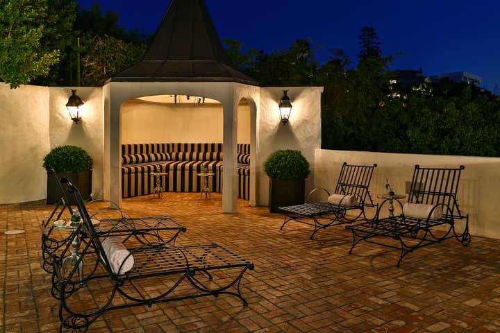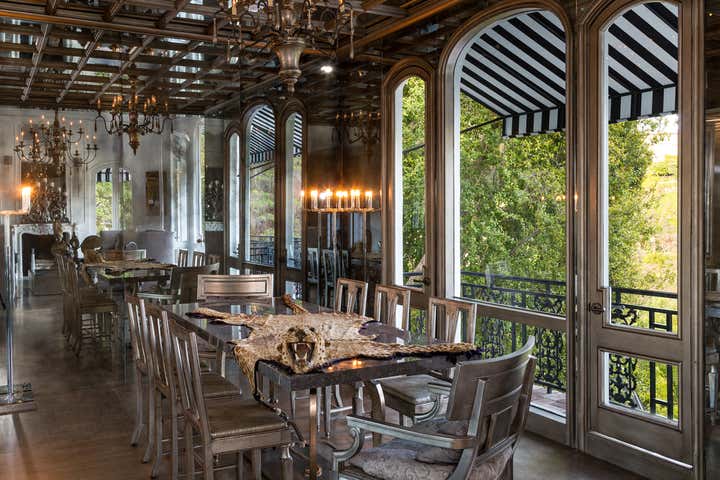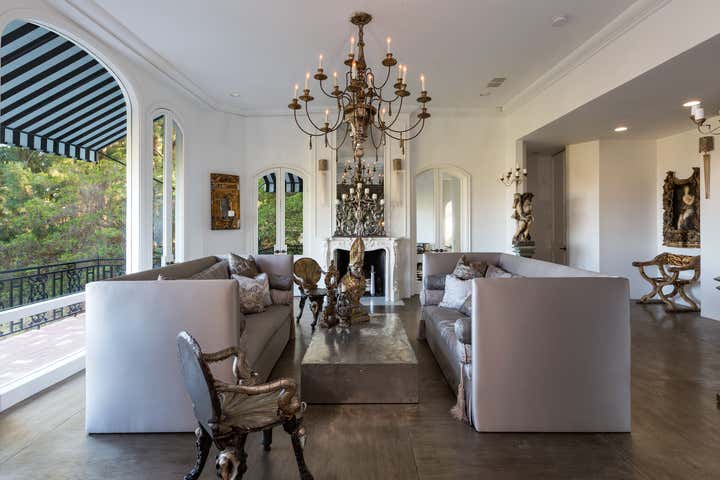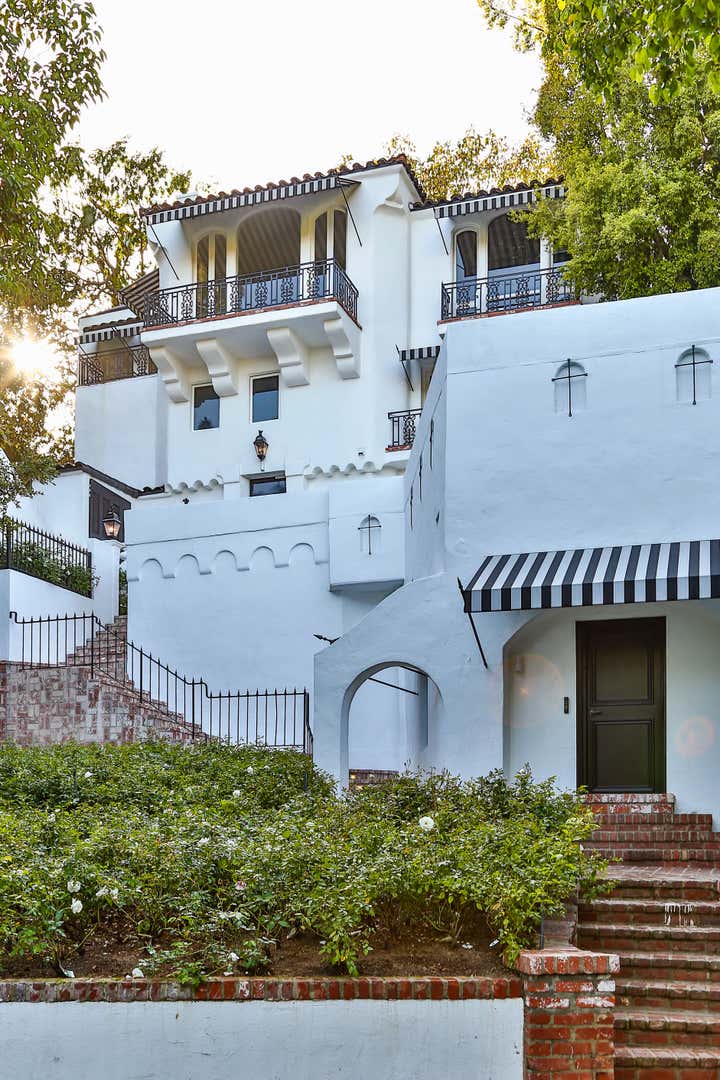 Classic Hollywood hillside home remodeled in an eclectic French Regency style.