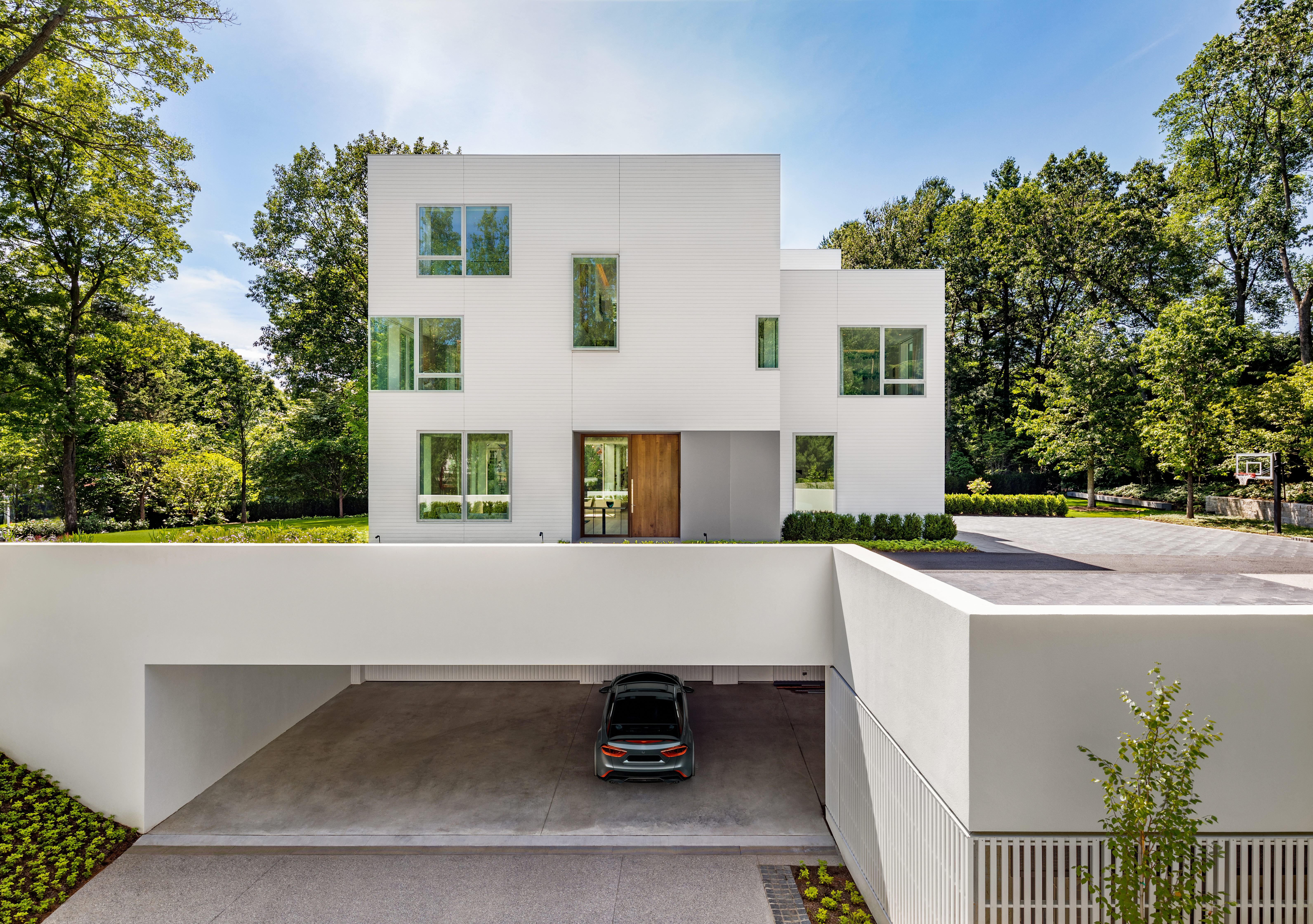 Designed for a young family, this house in Wellesley, Massachusetts offers a contemporary rendition of New England’s traditional white clapboard architecture. Inspired by the clients’ vision of a living in a white cube, the interlocking form emerged from studies of views, light, and spatial efficiency.