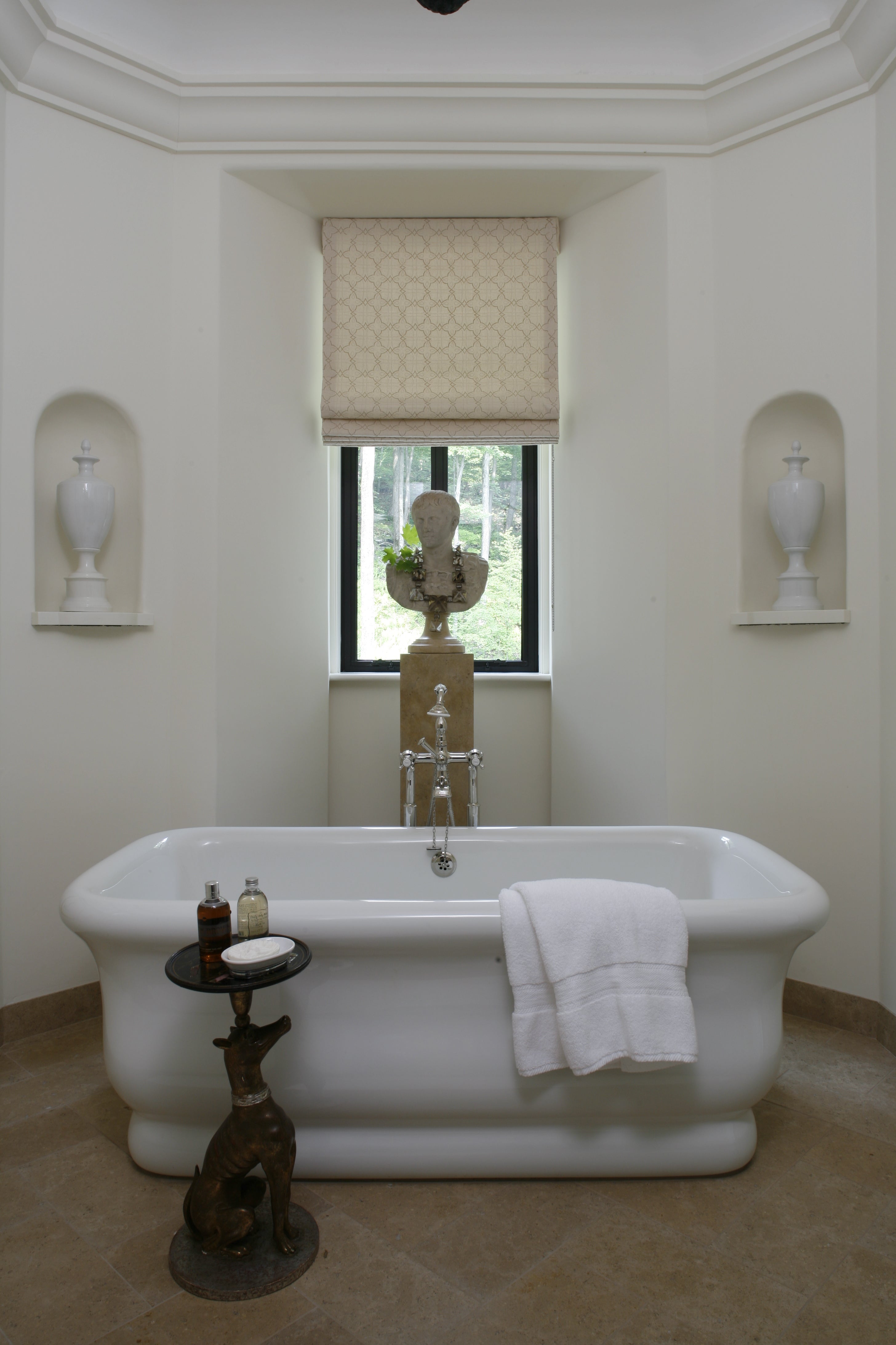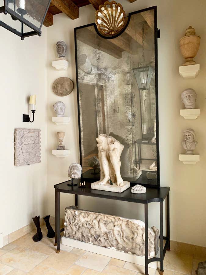Italy has always been a great inspiration for designers and architects throughout history and this 21st century house continues in that noble tradition. A personal collection of Italian art and antiques suits the spaces perfectly, and in fact the house was built around this collection. A soaring central living room is the heart of the house, which is flanked by a dining room and garden room. While the house is new, it feels old thanks to heavy plaster walls, reclaimed wood floors, time worn antiques and a color story that holds the entire house together.