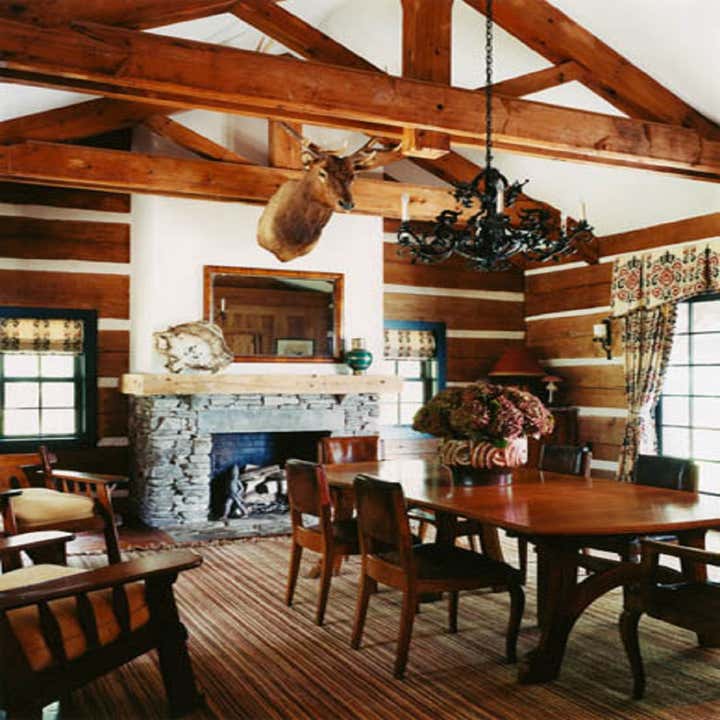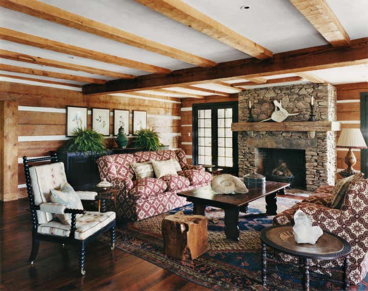 This hunting lodge in New York’s Hudson River Valley combines sophistication and exotic lure. Designed and restructured to serve as an inviting and glamorous hideaway, it exudes the confidence and delight of its occupants. The use of bright, patterns and exotic fabrics blend beautifully with the cabin’s frontier spirit to add personality and a layer of richness to each room. “Sara has choreographed interiors that exude the confidence and delight of its occupants.”