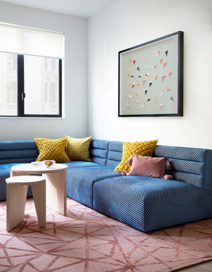 The “hang out room” off the living room was designed as a space for the kids to play while the grownups mingle – a custom modular sofa can be configured in multiple ways, for lounging or playing board games.